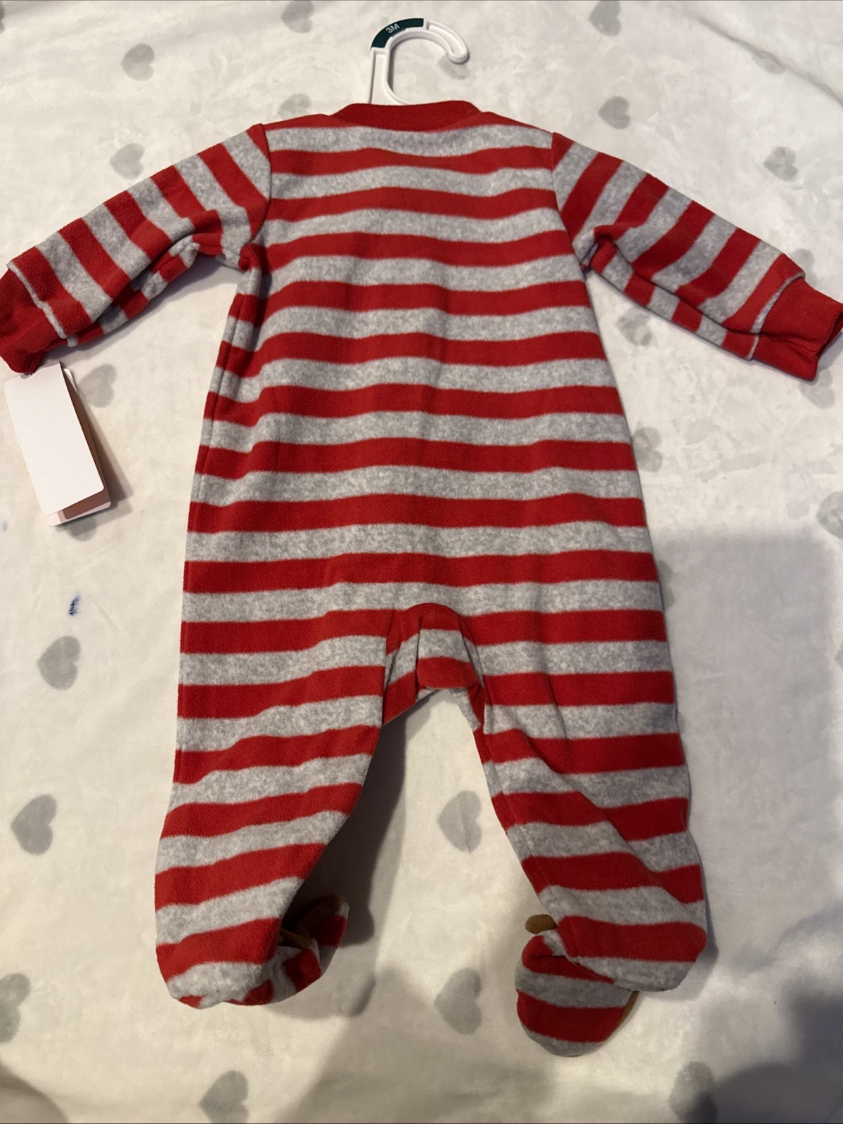 как выглядит Carters Christmas Reindeer Striped Fleece Sleeper 2 Way Zip Footed Pajamas 3M фото