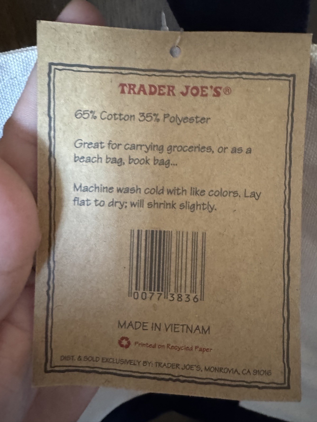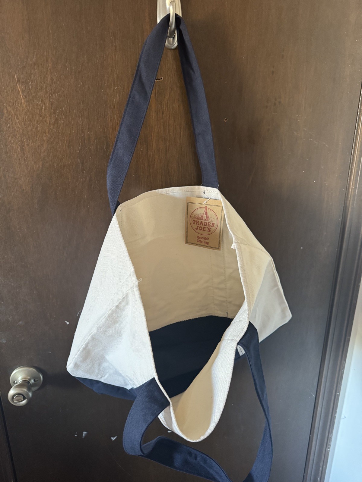 как выглядит Trader Joe s Bag Canvas Reusable Heavy Cotton Basic Style Shopping Navy Large фото