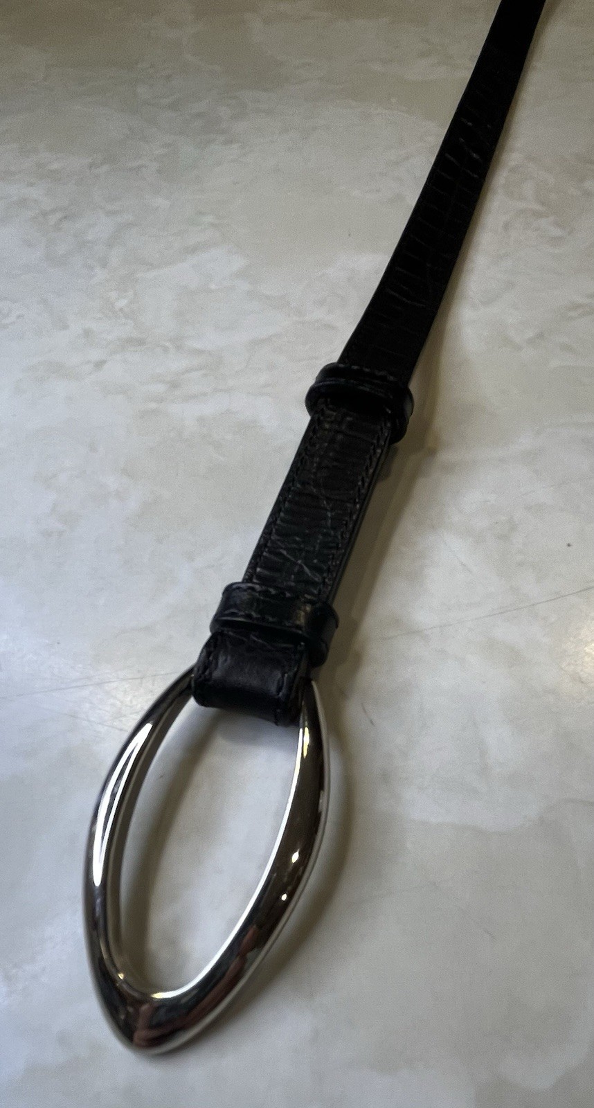 как выглядит Talbots Crocodile Look Black Silver Buckle Clip On 1/2" Wide Belt Sz M Italy фото