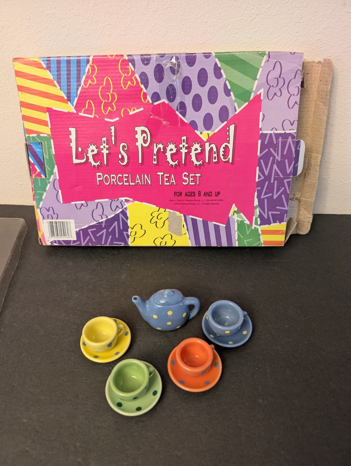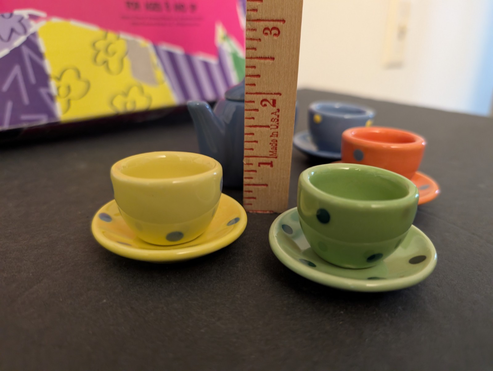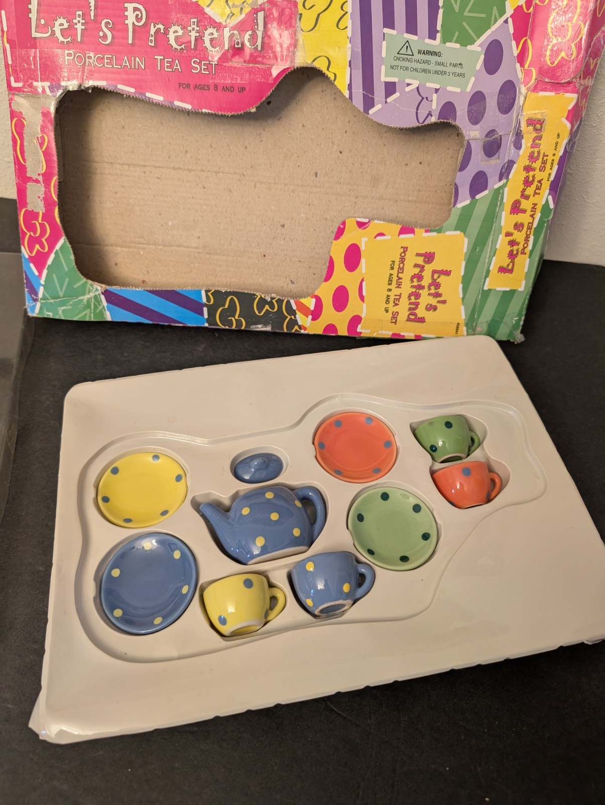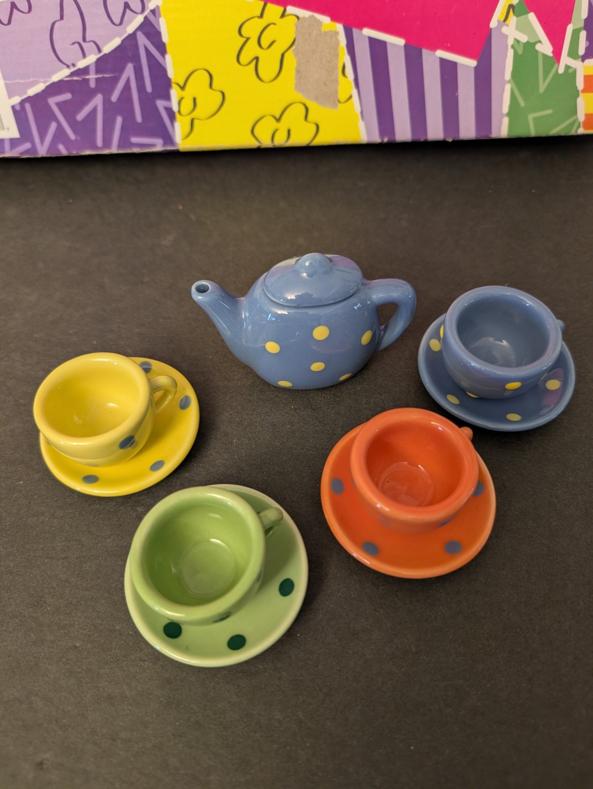 Porcelain Tea Set 10 Pieces Polka dot Multicolored - In Box Original Box