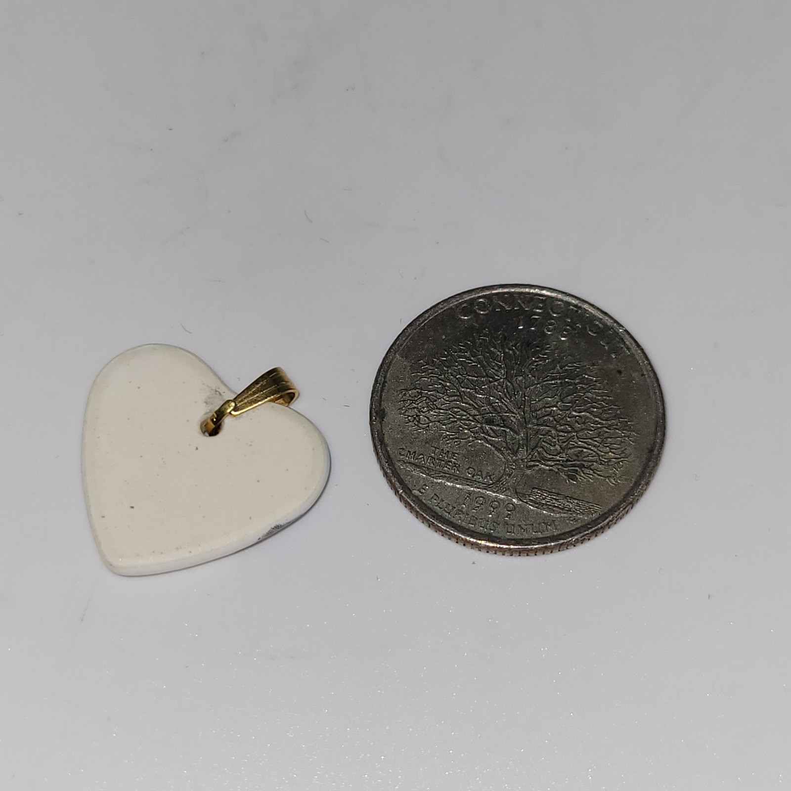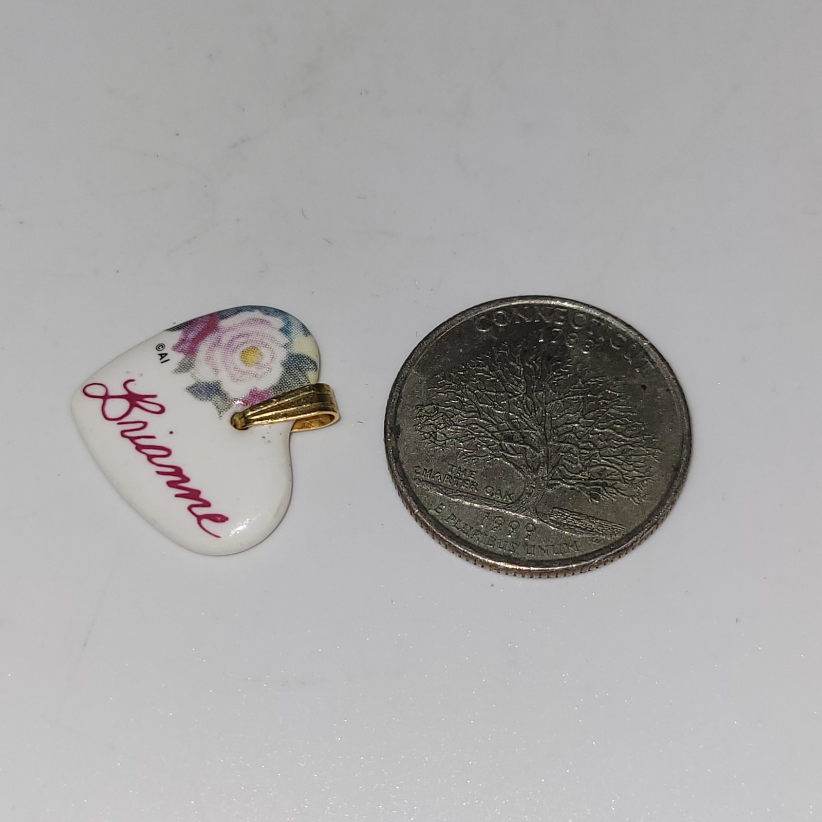 Brianne Heart Shaped Kiln Fired Porcelain Metal Bail Pendant Flower graphic