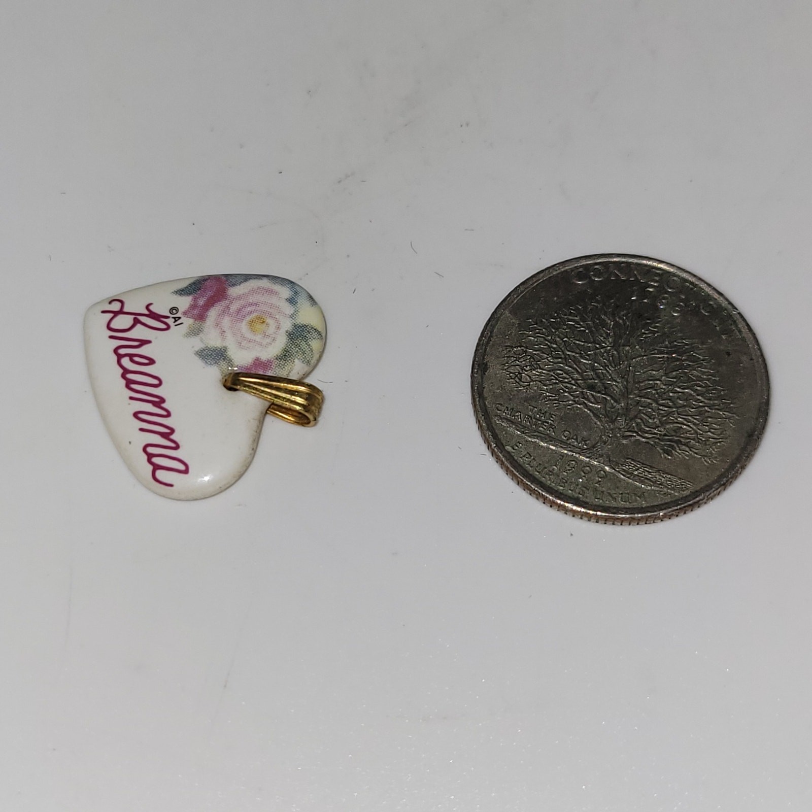 как выглядит Breanna Heart Shaped Kiln Fired Porcelain Metal Bail Pendant Flower graphic фото