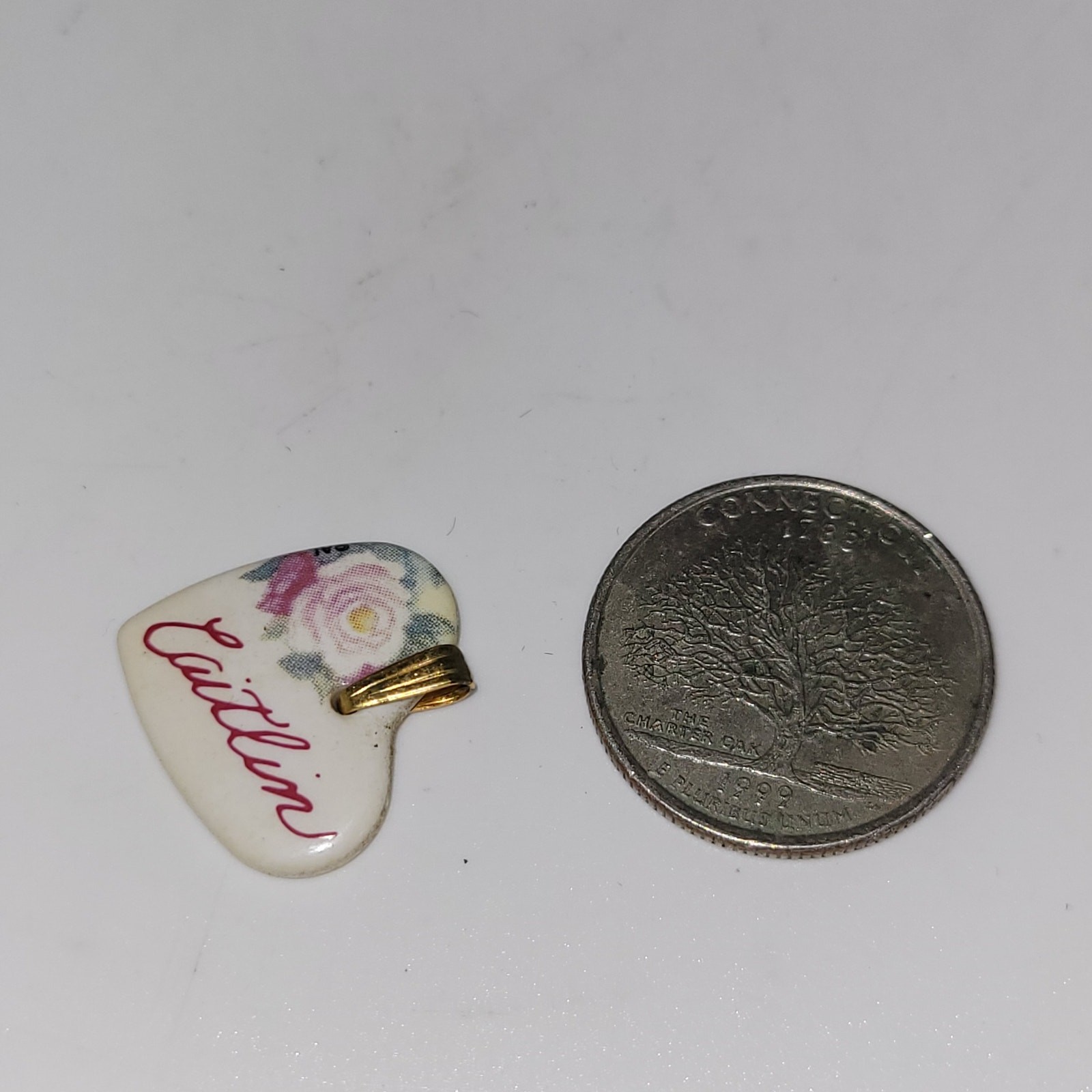 Caitlin Heart Shaped Kiln Fired Porcelain Metal Bail Pendant Flower graphic