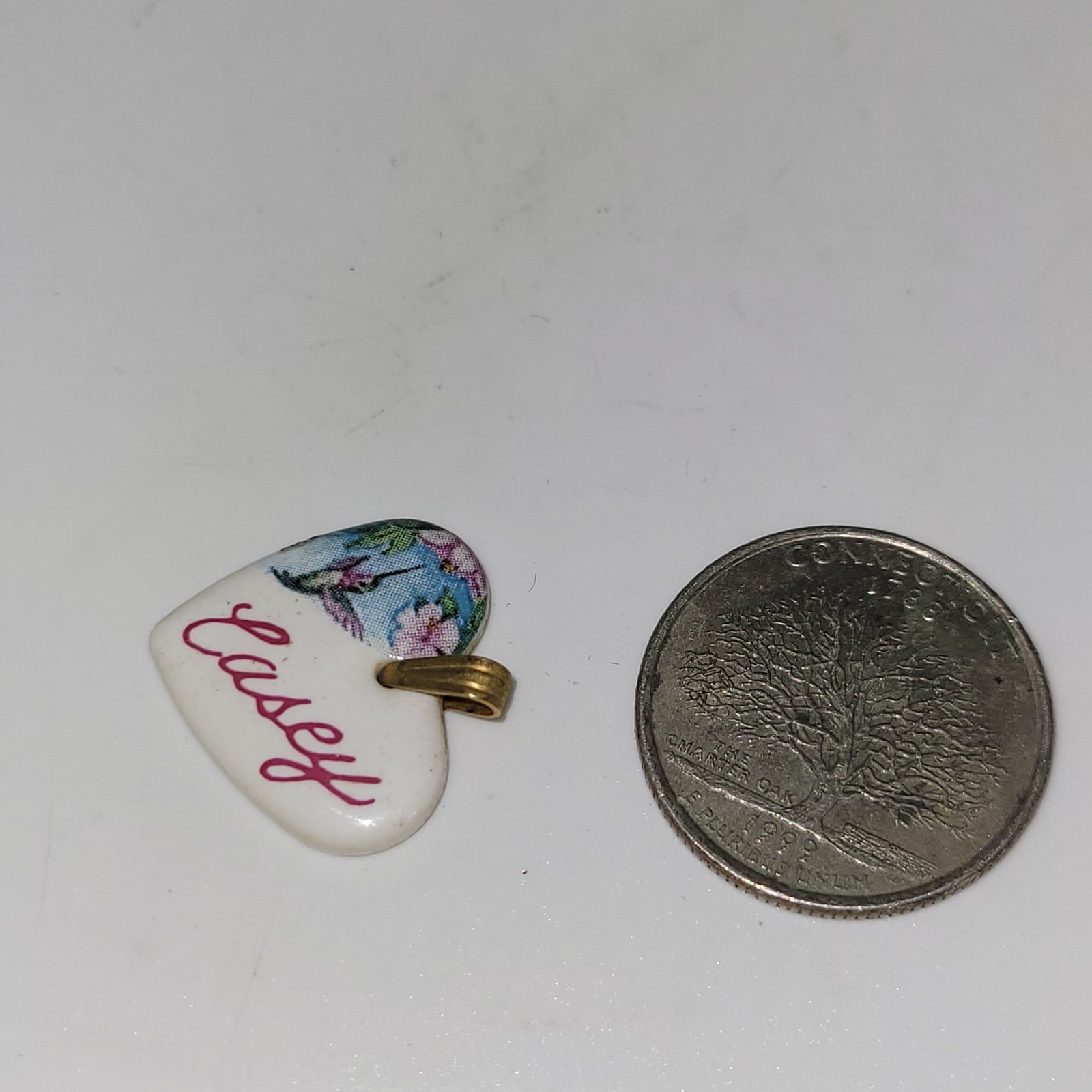 Casey Heart Shaped Kiln Fired Porcelain Metal Bail Pendant Butterfly graphic