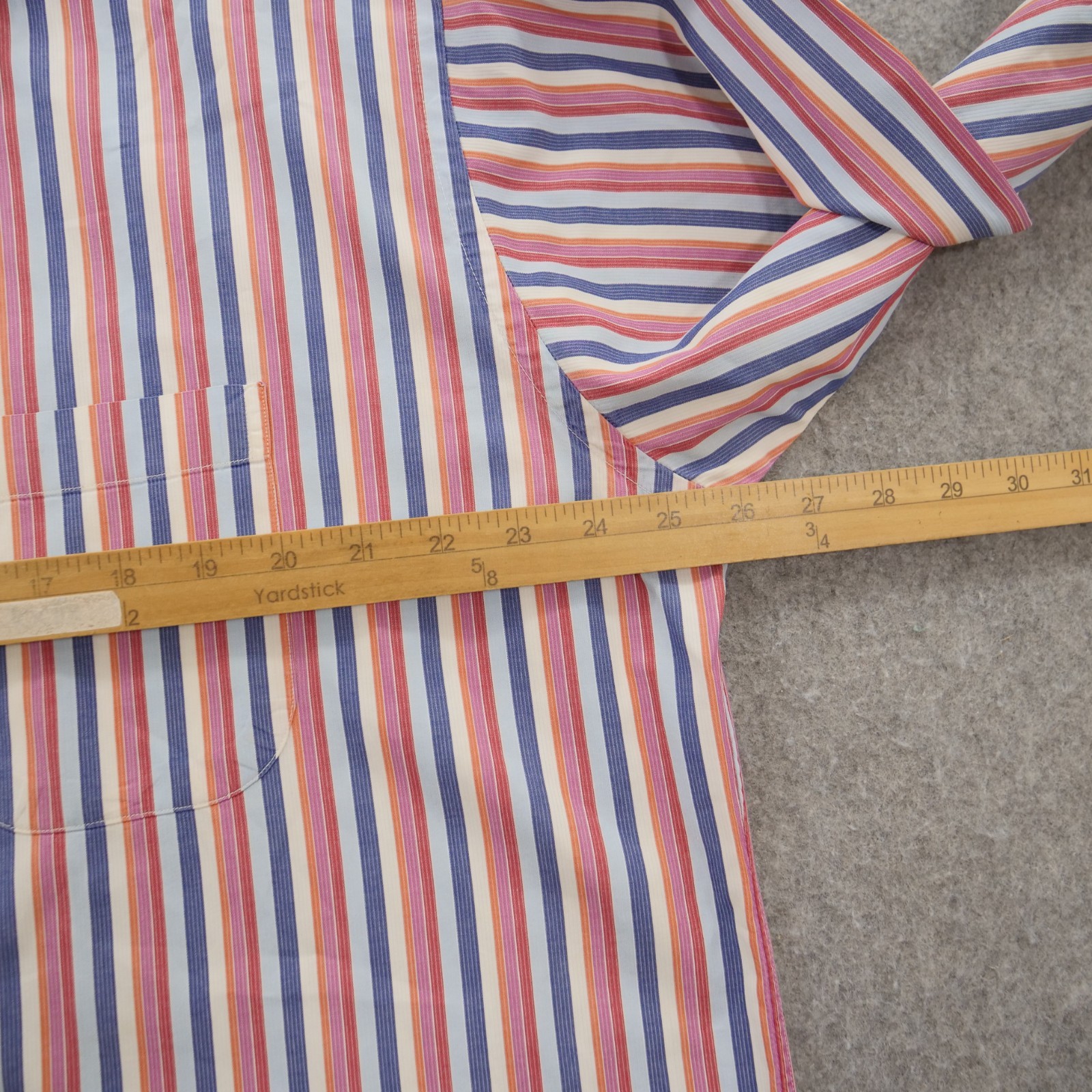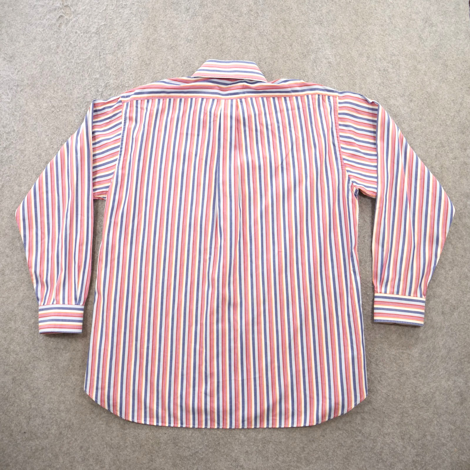 как выглядит Burberry London Shirt Mens 17.5 Red Blue Button Up Striped Long Sleeve Dress фото