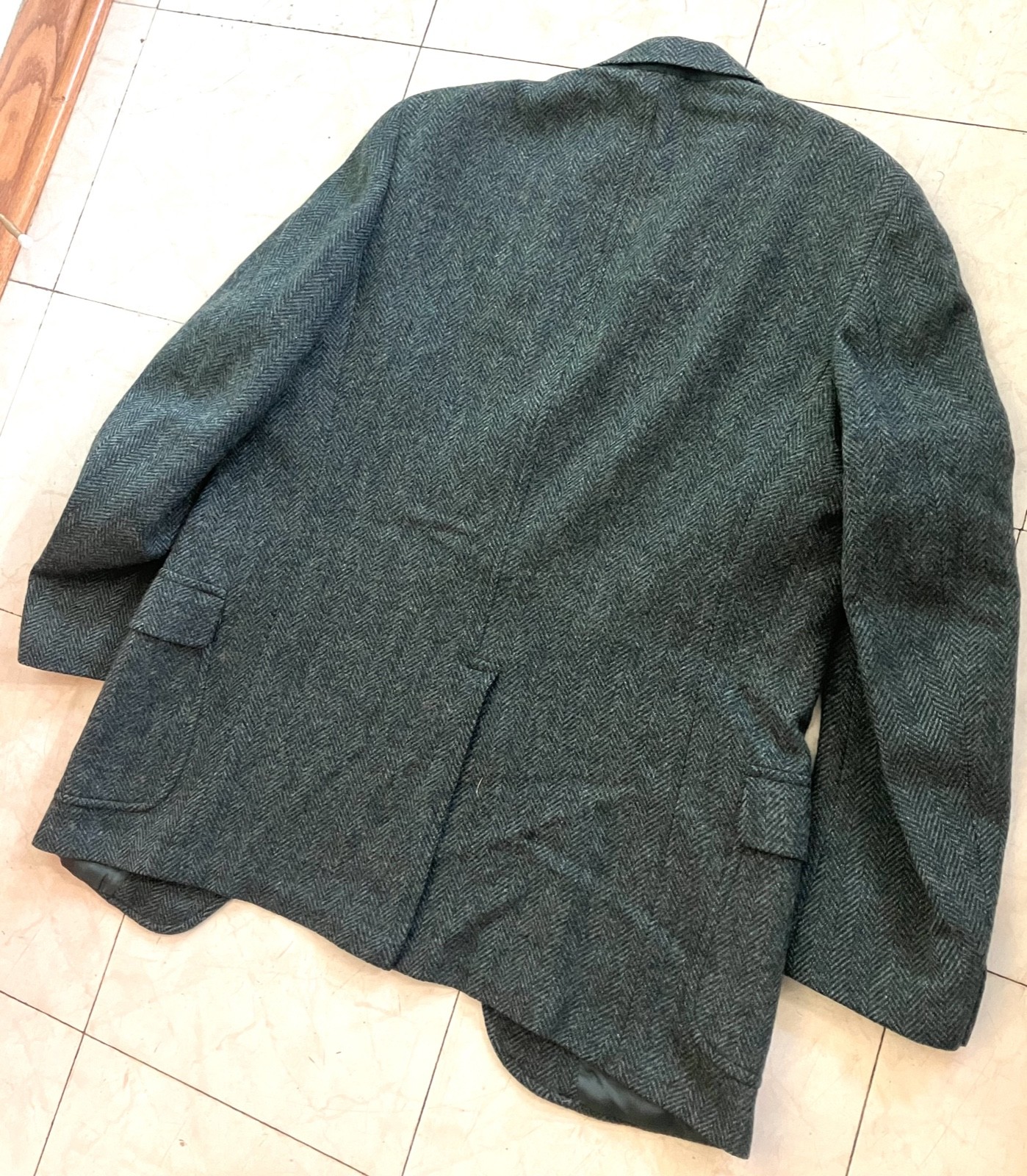 как выглядит Vintage 1960s Blue Herringbone TWEED Sack Sport Coat 40 R USA Prep Ivy League фото