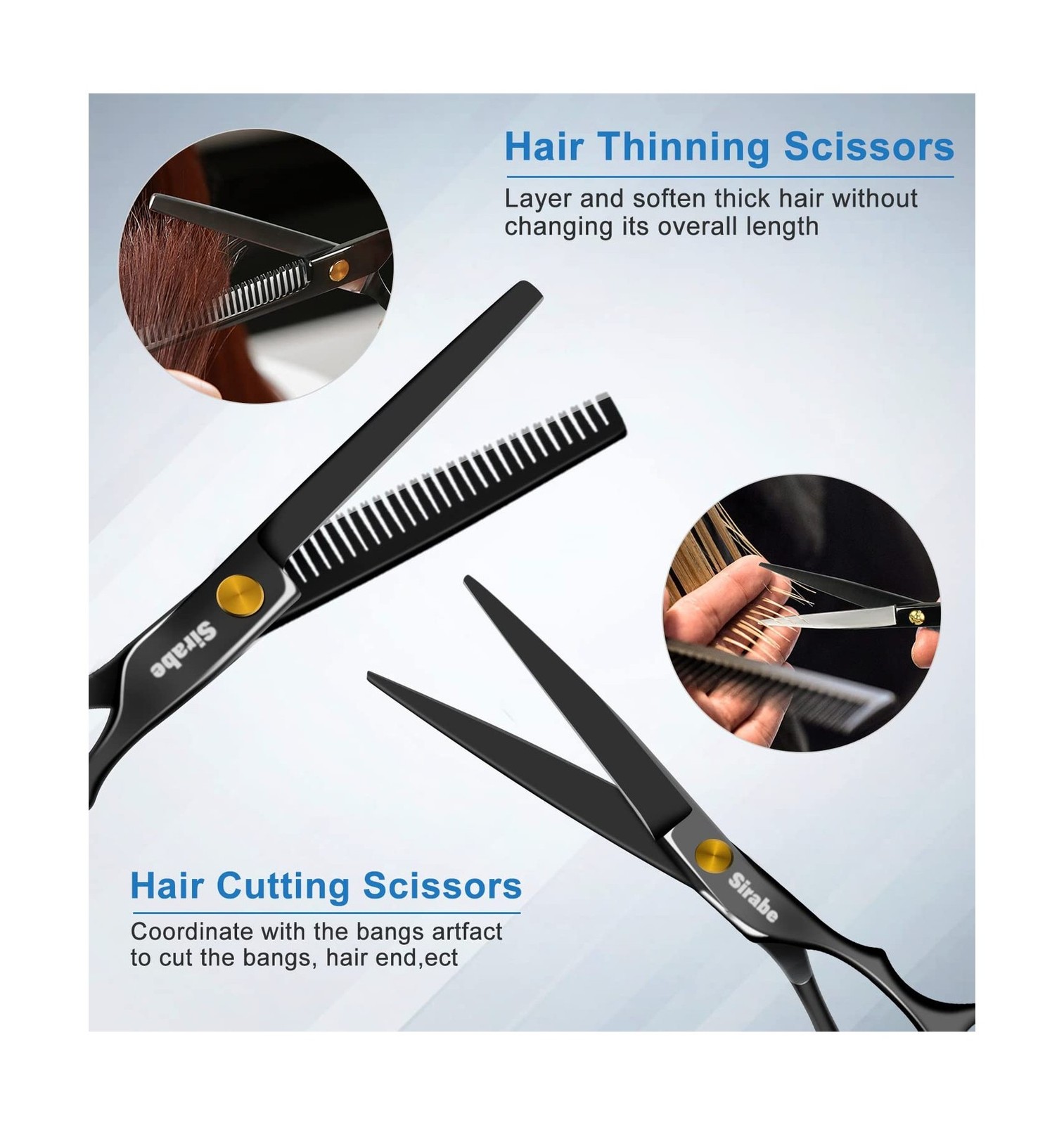Sirabe 10 PCS Hair Cutting Scissors Set, Professional Haircut Scissors Kit wi...