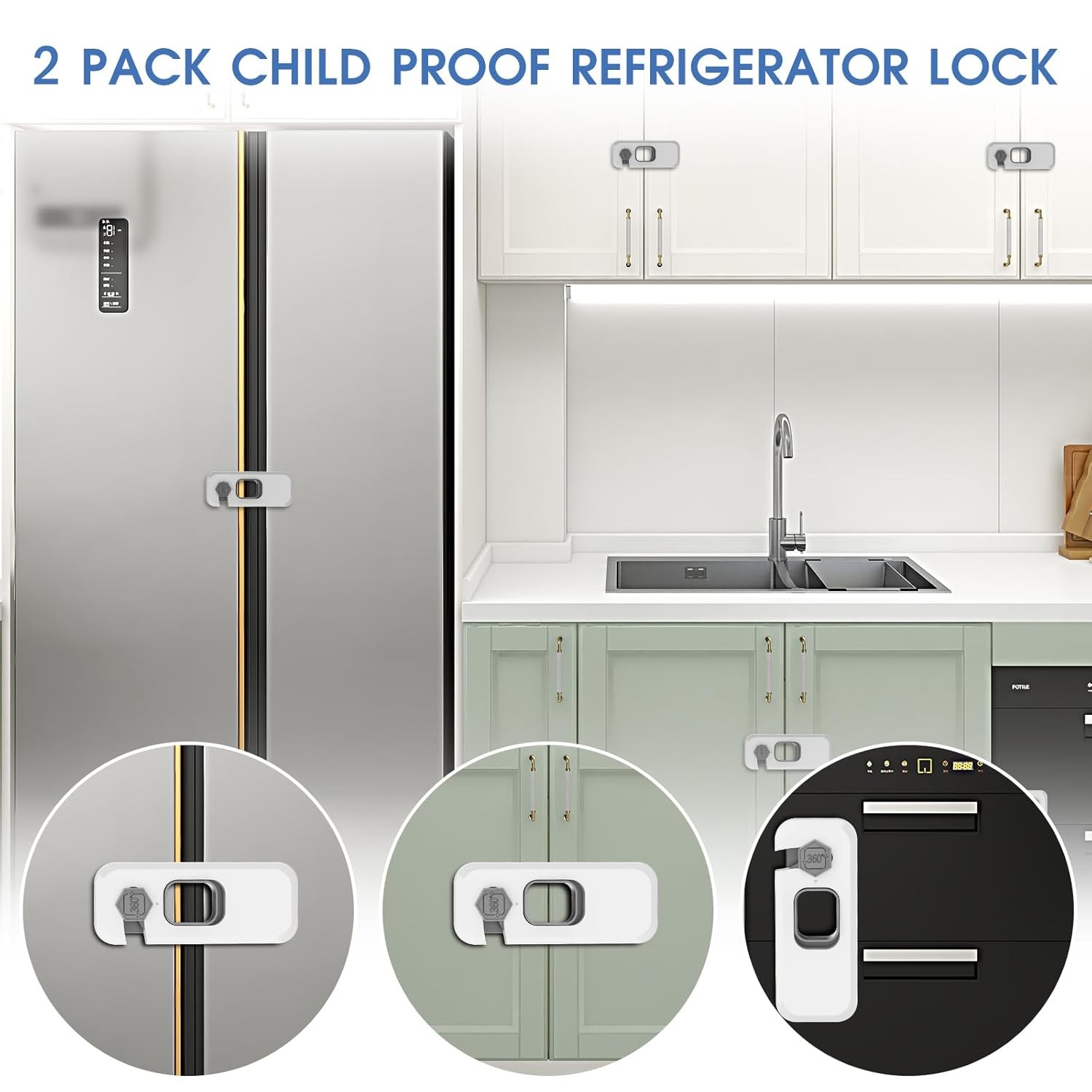 2 Pack Fridge Locks with Adhesive Child Safety Refrigerator Door Lock for Kids
