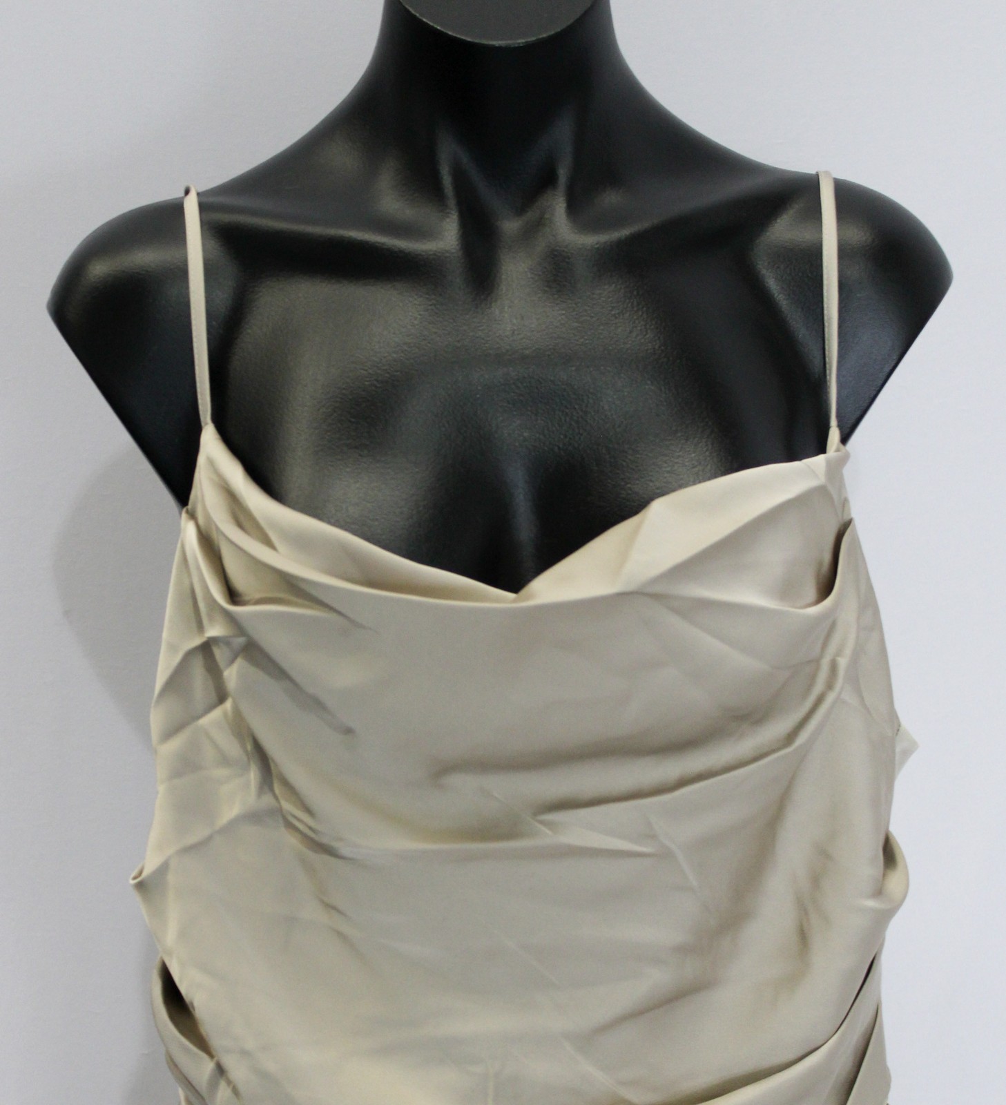Birdy Grey Womens Lydia Matte Satin Bridesmaid Dress CD4 Neutral Champagne Large