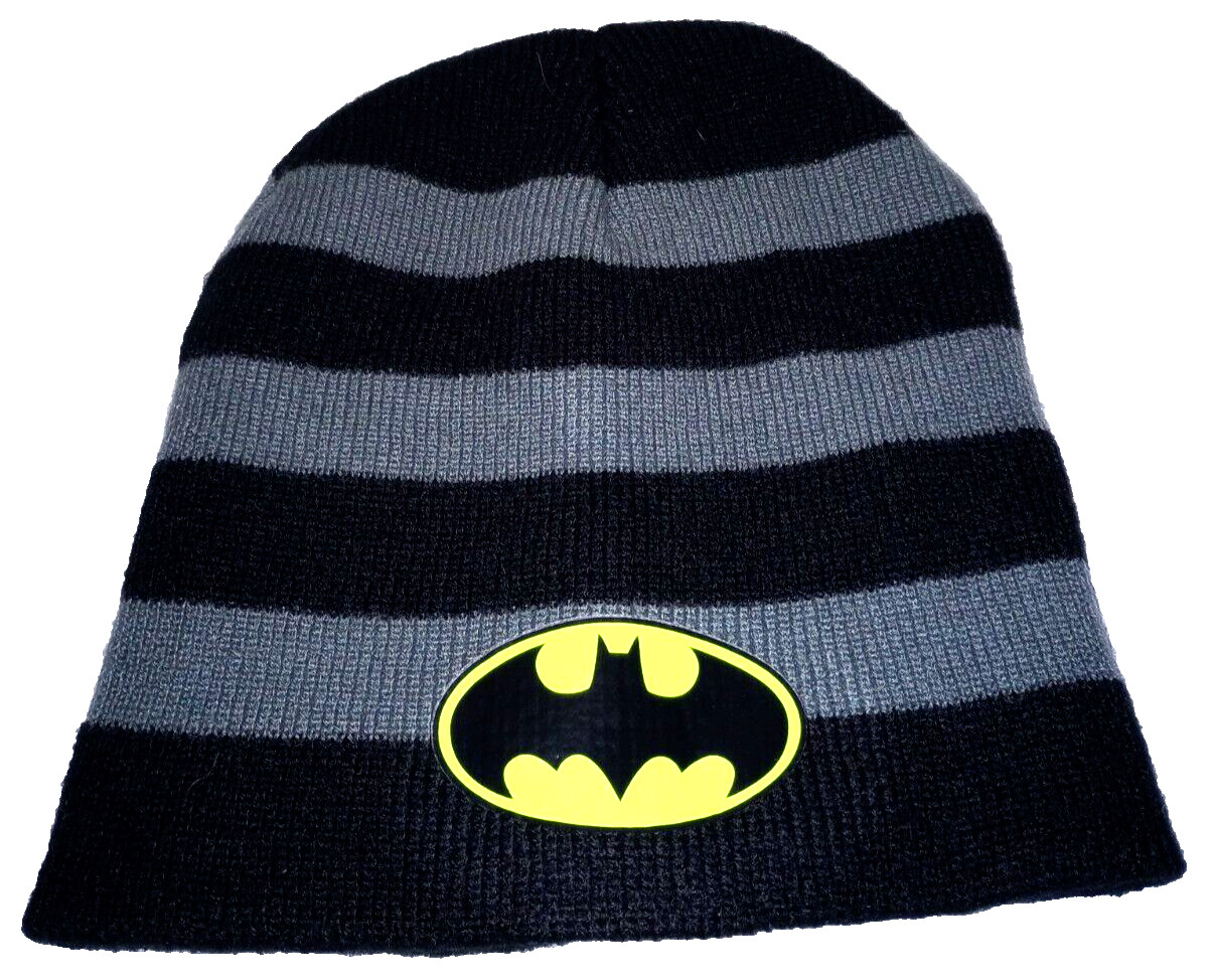 Batman Knit Hat / Beanie - Youth / Kids - Black Gray Stripes - DC Comics