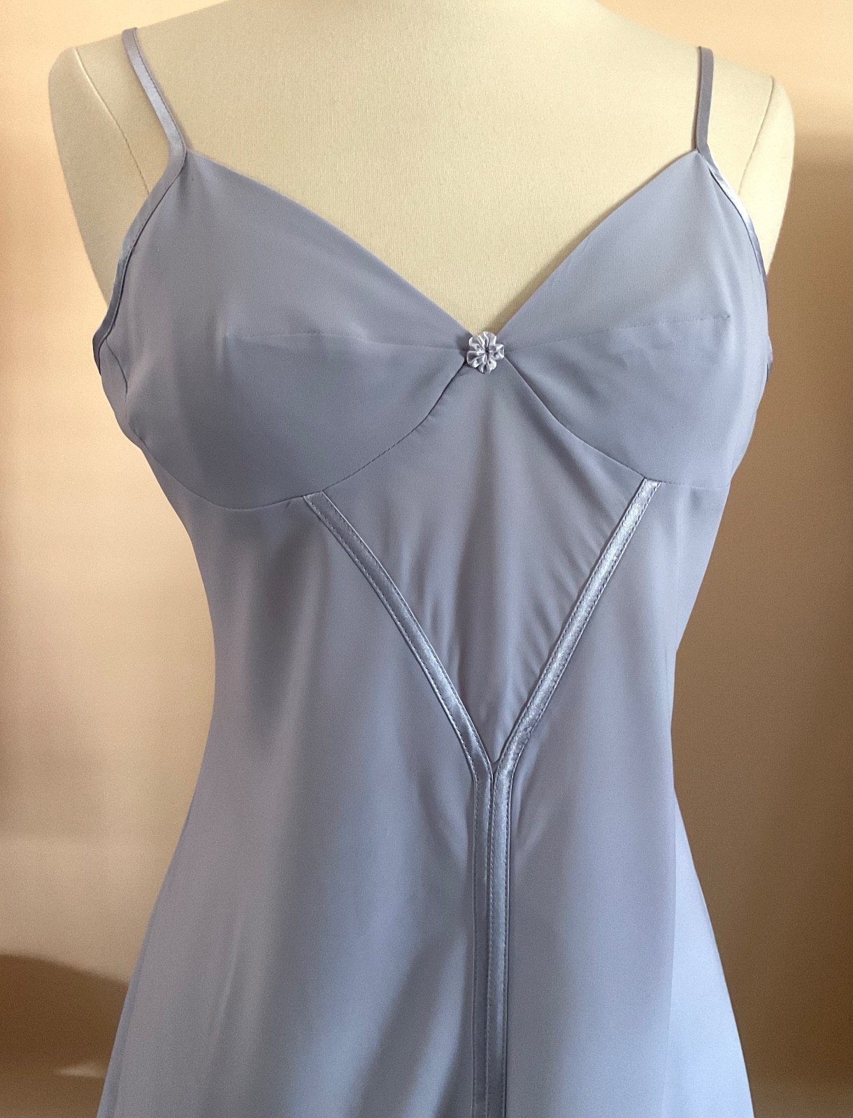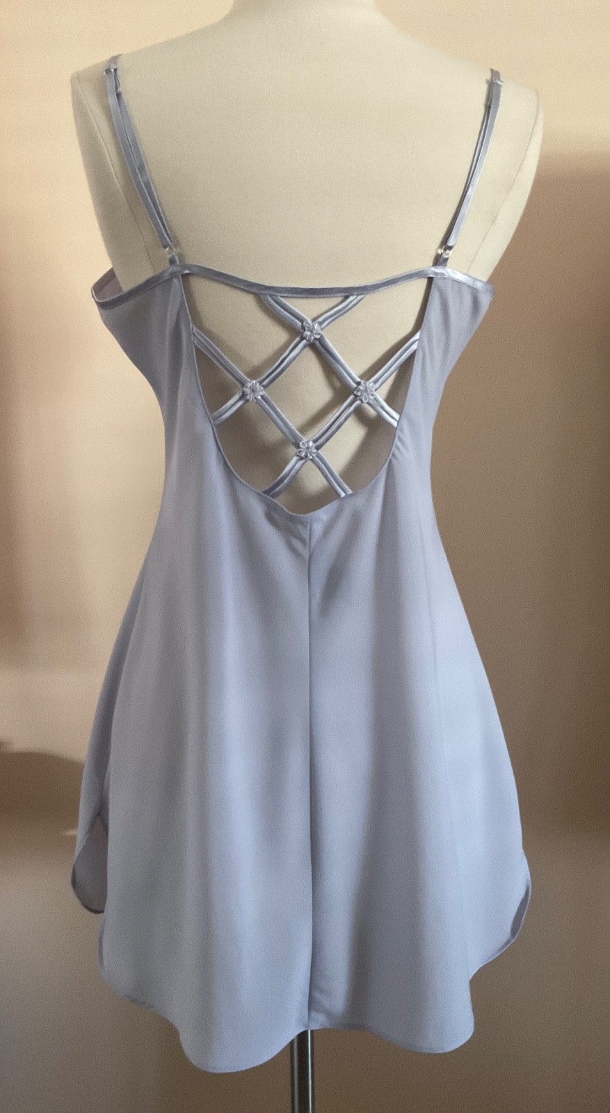VTG JONES NEW YORK SZ MED DUSTY LAVENDER SHORT POLY NIGHTGOWN SATIN TRIM MINT