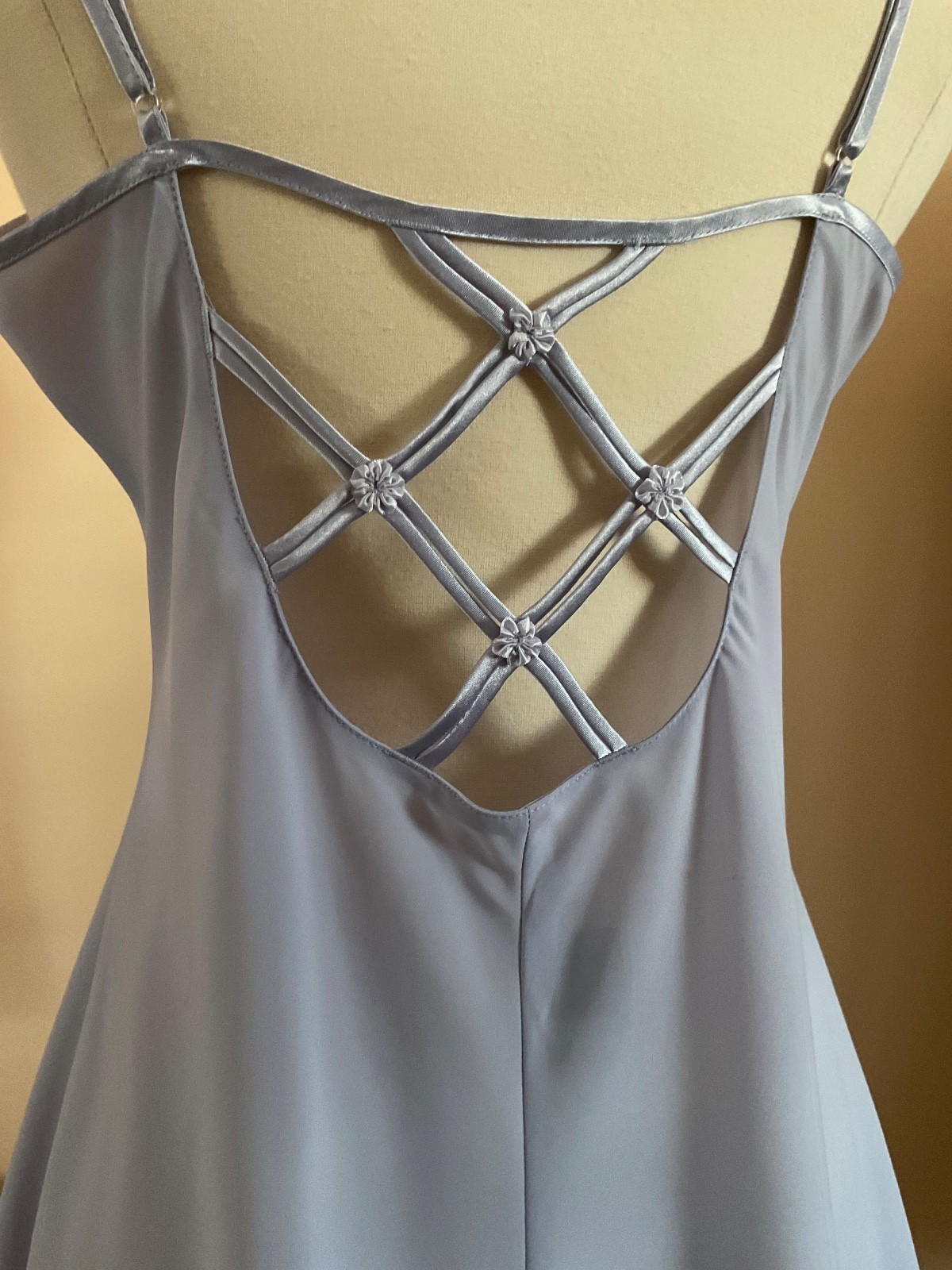 как выглядит VTG JONES NEW YORK SZ MED DUSTY LAVENDER SHORT POLY NIGHTGOWN SATIN TRIM MINT фото