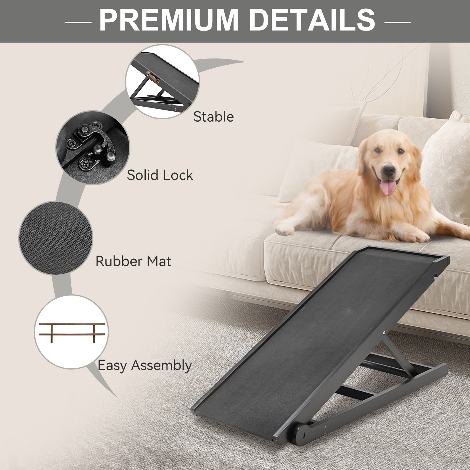 Folding Wooden Adjustable Pet Ramp For Various Dog to Get on Bed,Non-Slip Rubber