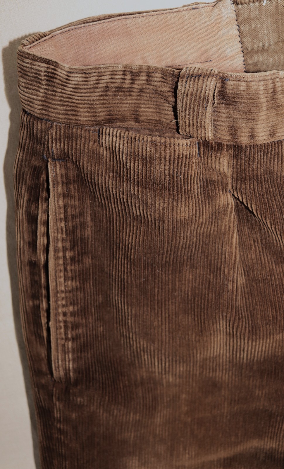 Vintage 1940/50s Brown Corduroy Work Chore Pleated Pants W34 Made in France