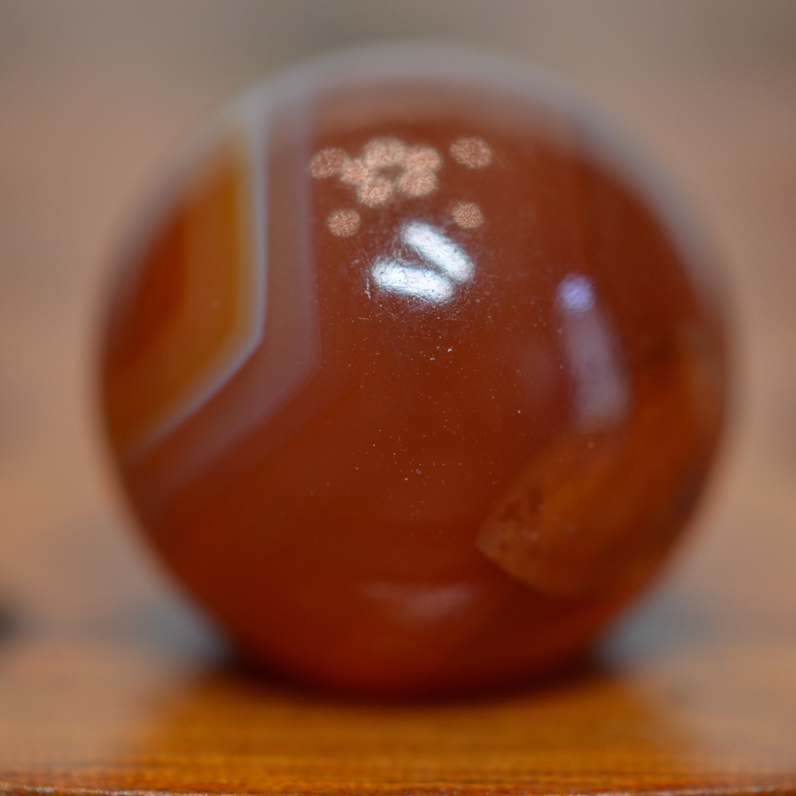 Handmade Bullseye Faceted Agate Marble, 3/4 in, Mint, Germany, 1860-1920, S1564