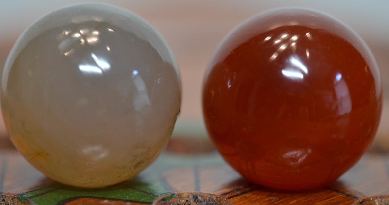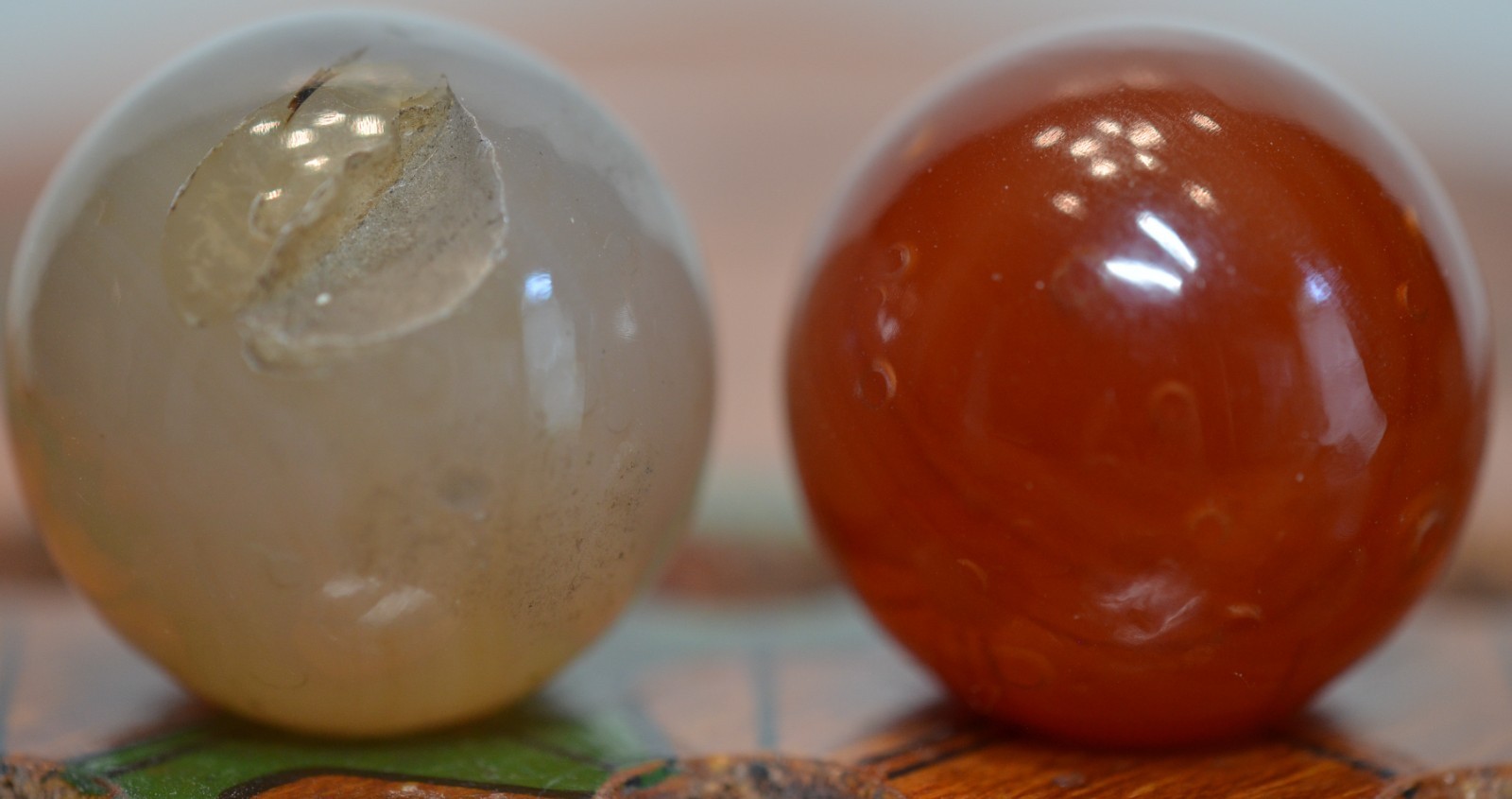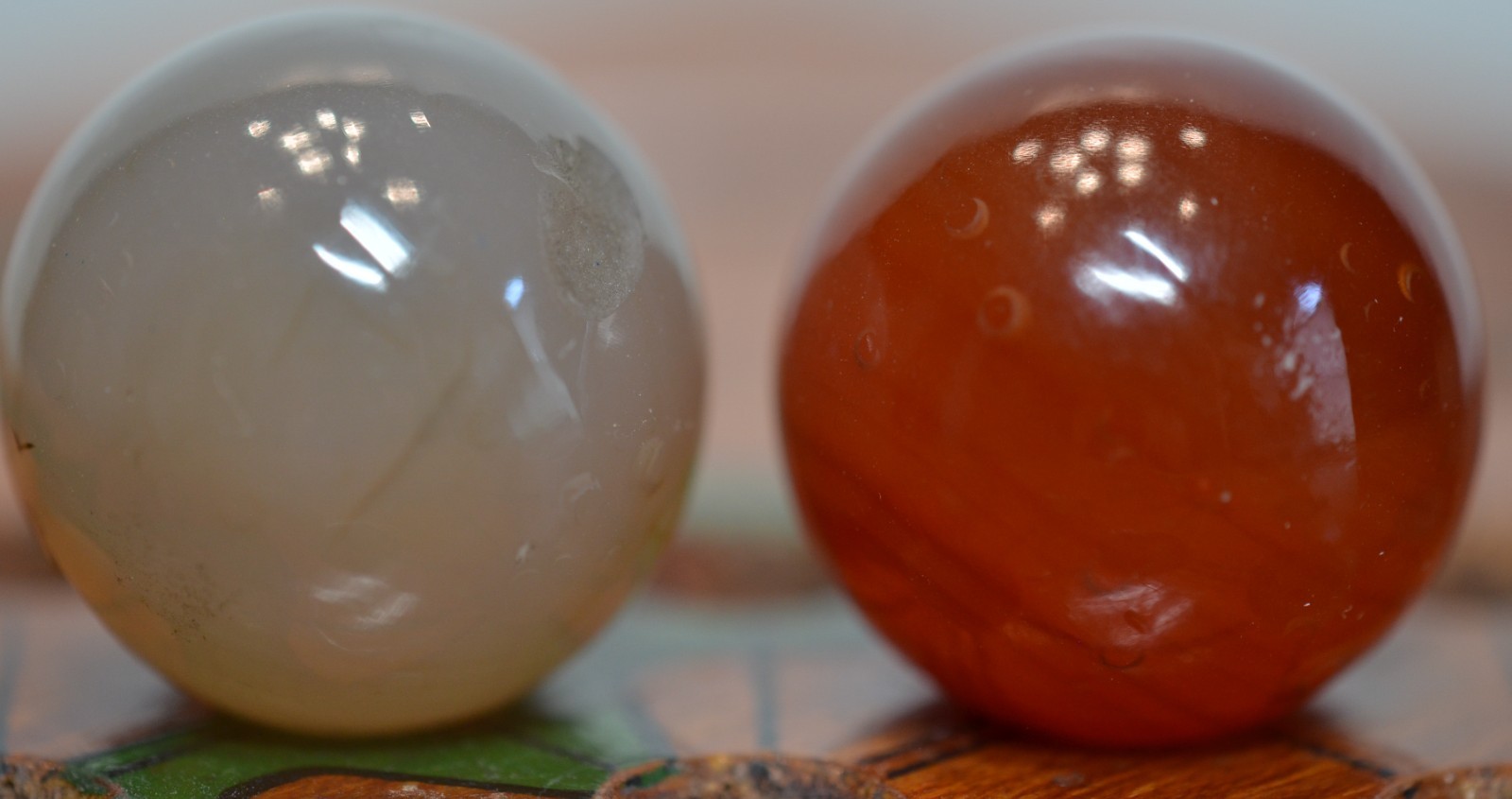 Two Handmade Faceted Agate Marbles, 0.88 in each, NM , Germany, 1860-1920, S1567