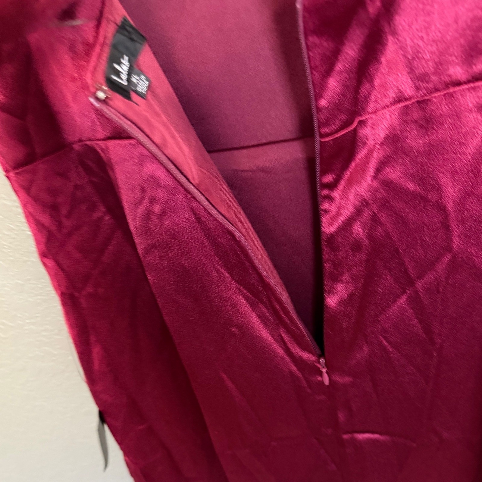 как выглядит NWT Lulus Satin Maxi Dress Gown XL Red Front Slit Bridesmaid Party Holiday фото