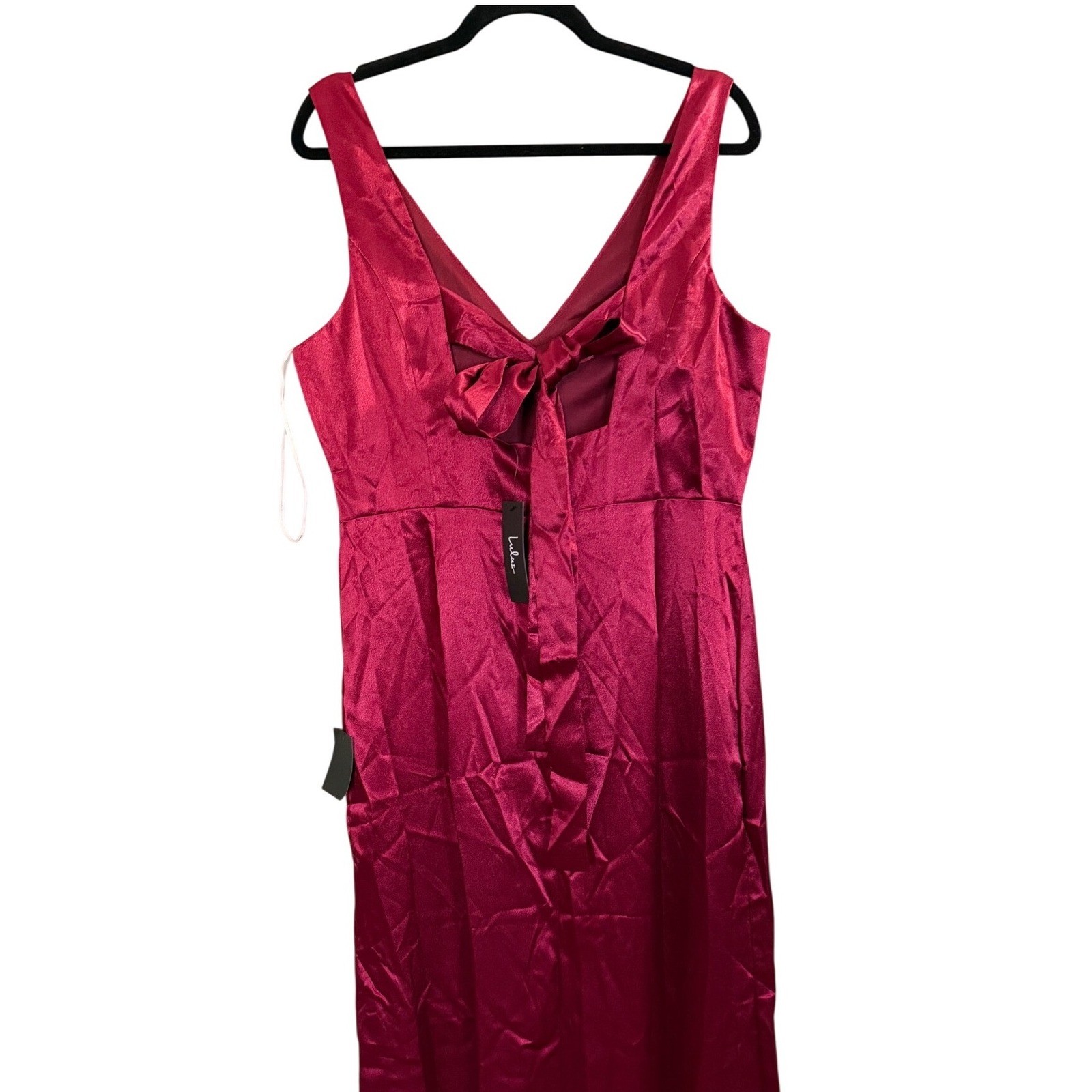 NWT Lulus Satin Maxi Dress Gown XL Red Front Slit Bridesmaid Party Holiday