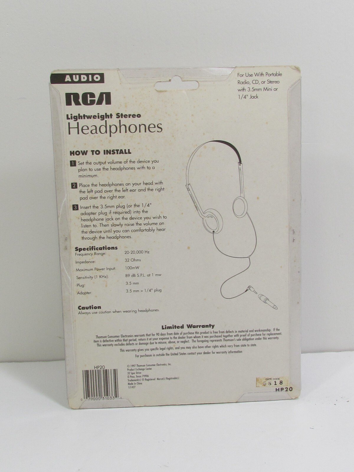 RCA lightweight stereo Headphones HP20 In packaging 1997 new