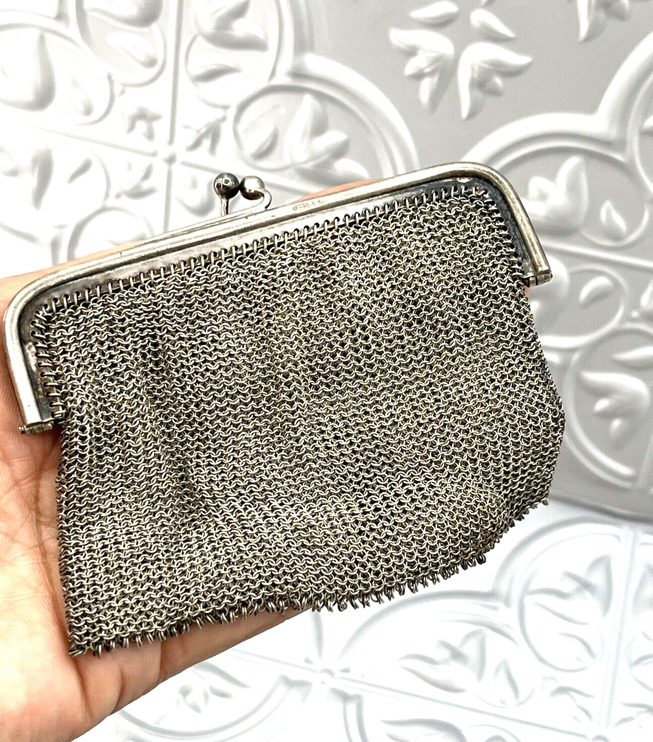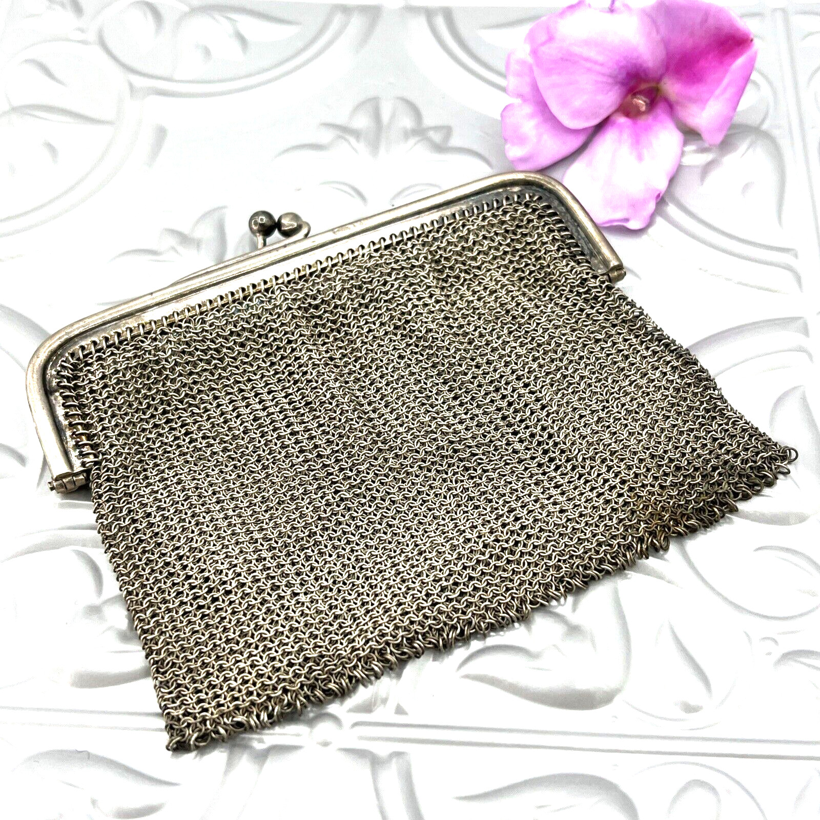 Antique Sterling Silver Chatelaine Chain Mail Coin Purse 85 grams