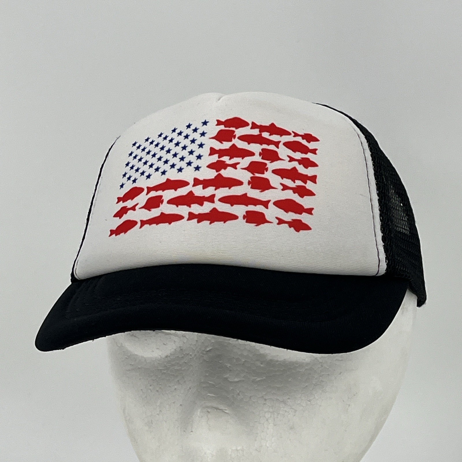 American Flag USA Fishing Youth Hat Boys SnapBack MeshBack Foam Trucker Cap EUC