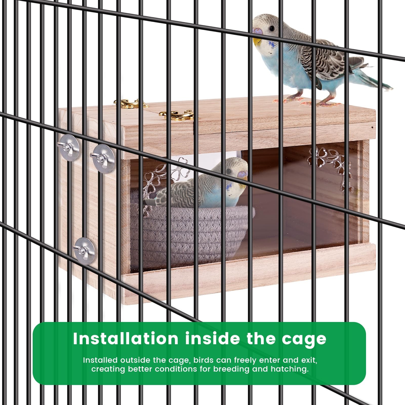 Parakeet Nesting Box for Cage Bird Breeding Box for Parakeet Nest, Large Nest...