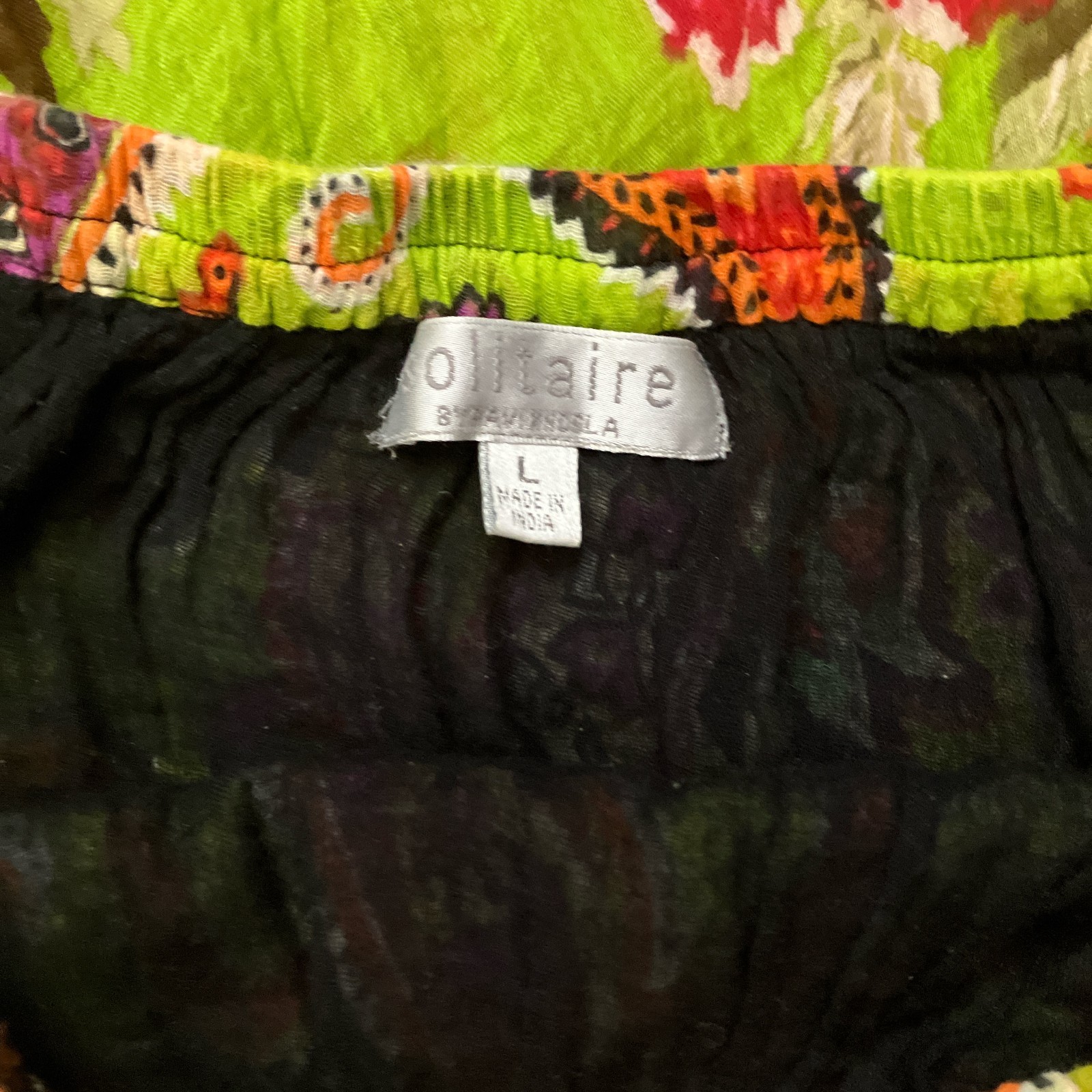 как выглядит Women s Vintage Green Whimsical Patterned Floral Midi Skirt Distressed Size L фото