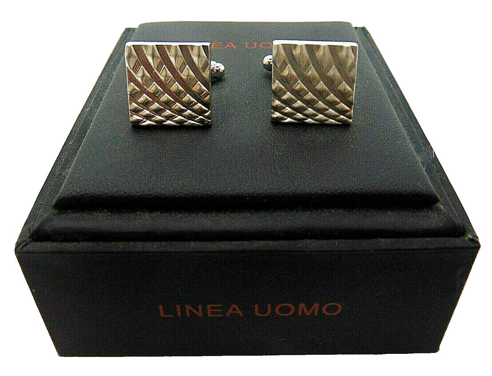 Cufflinks Men's Silver Square Swirl French Cuff Brushed Angle Linea Uomo