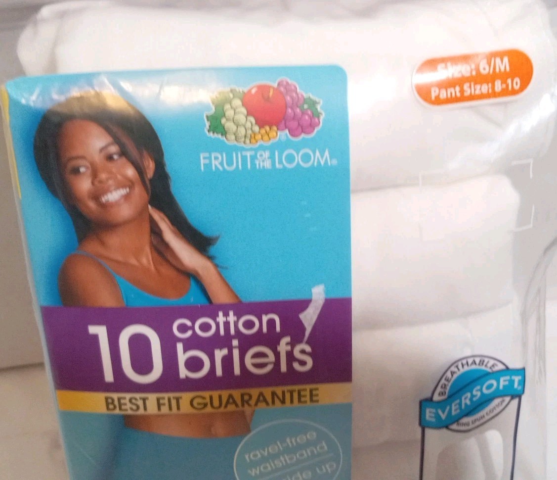Women's Fruit Of The Loom 10pack Cotton Briefs White Size 6/M NIP