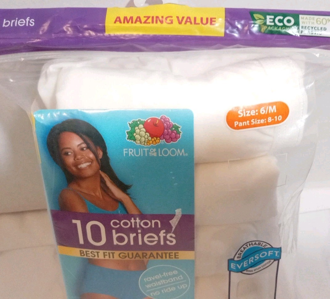 как выглядит Womens Fruit Of The Loom 10pack Cotton Briefs White Size 6/M NIP фото
