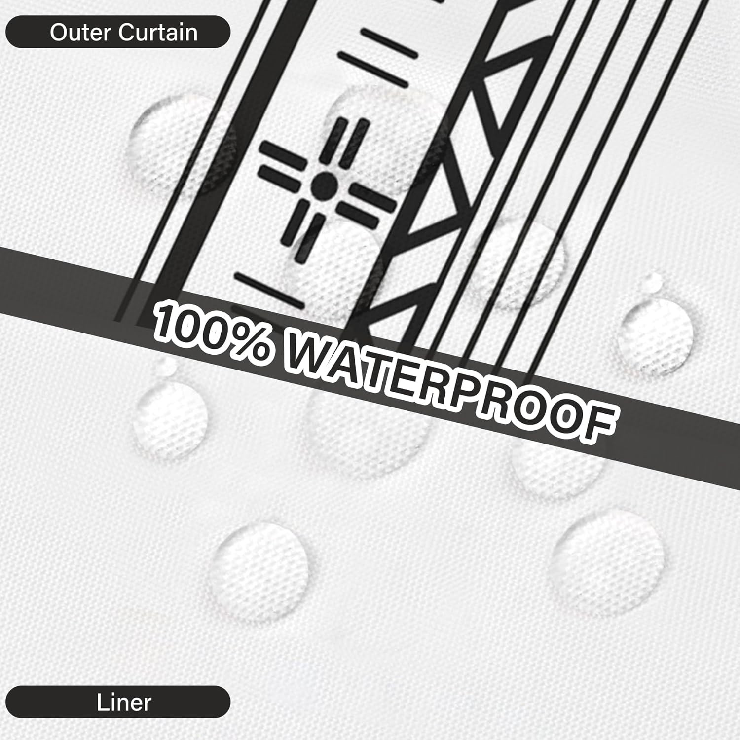 Modern Black and White Striped No Hook Shower Curtain with Snap-in Liner, 71x74