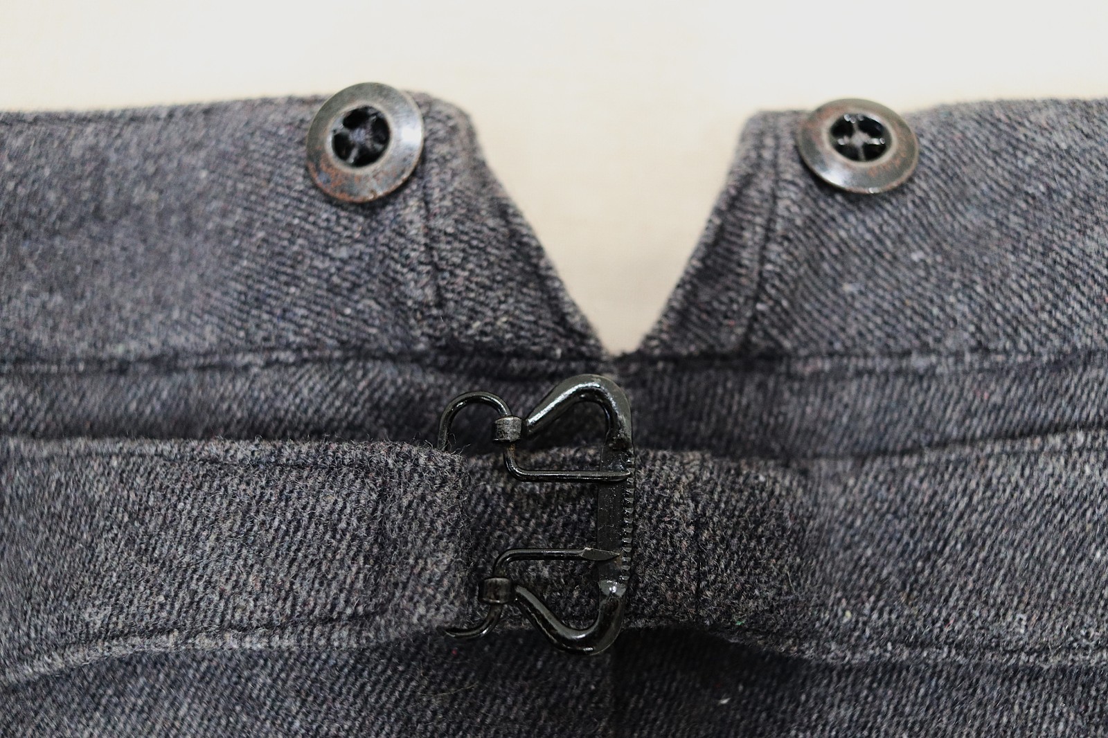 VTG 1940s Faded Grey Wool Buckle Back Work Pascal Style Pants W34 Made in France