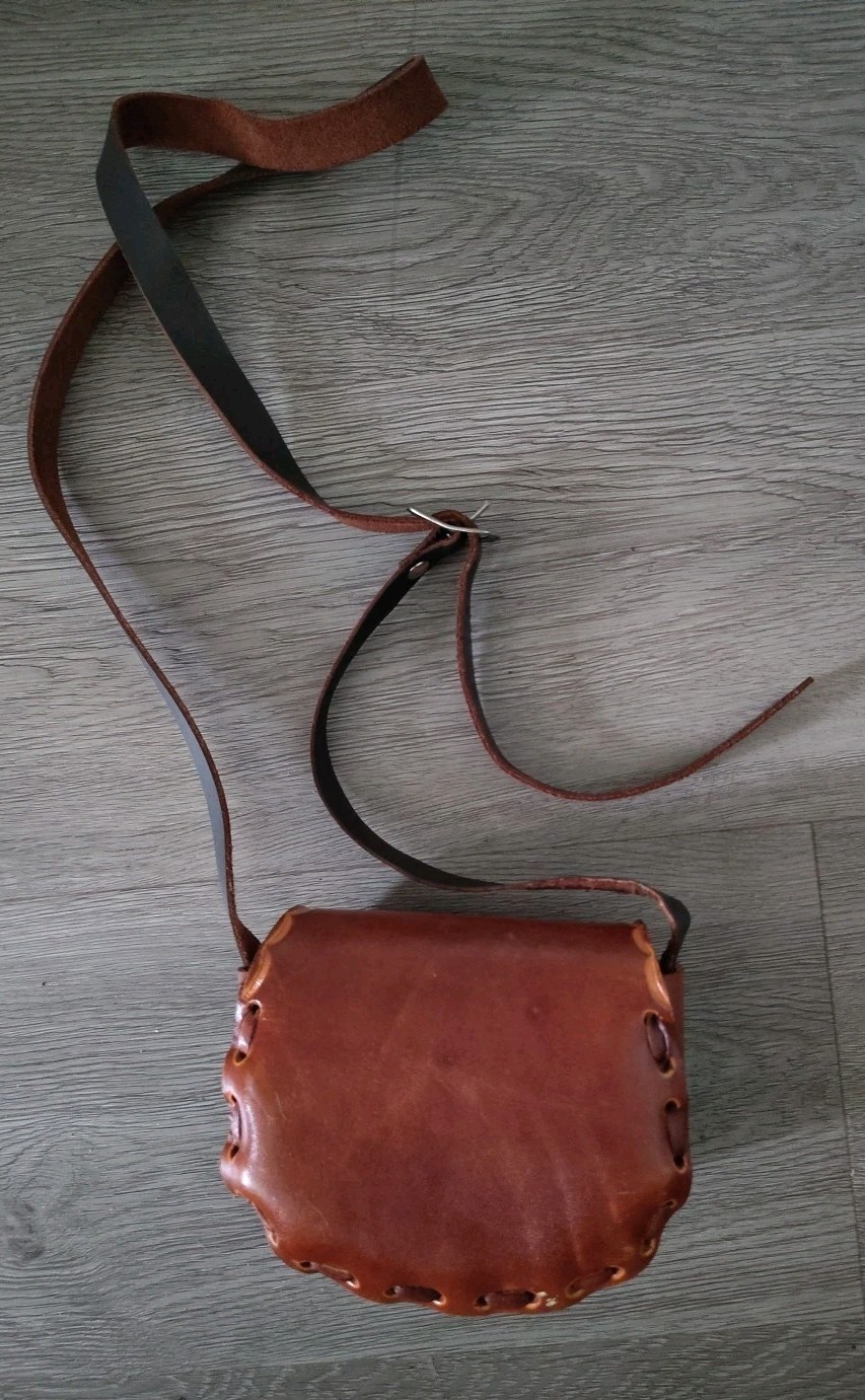 как выглядит Vintage Mexican Hand- Tooled And Hand-Painted Mini Leather Childs Purse Bag фото