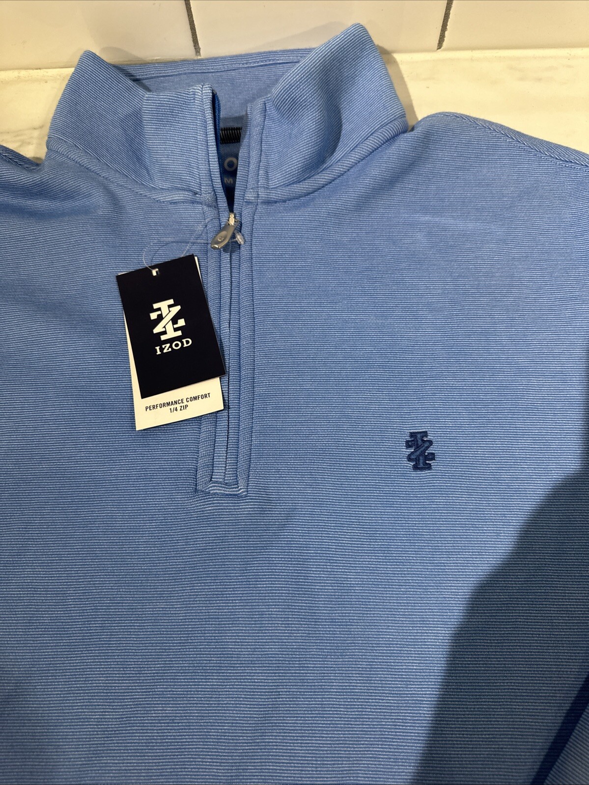 Izod Golf 1/4 Zip Mens M Blue Pullover Performance Sweater Stretch Mock Neck 65