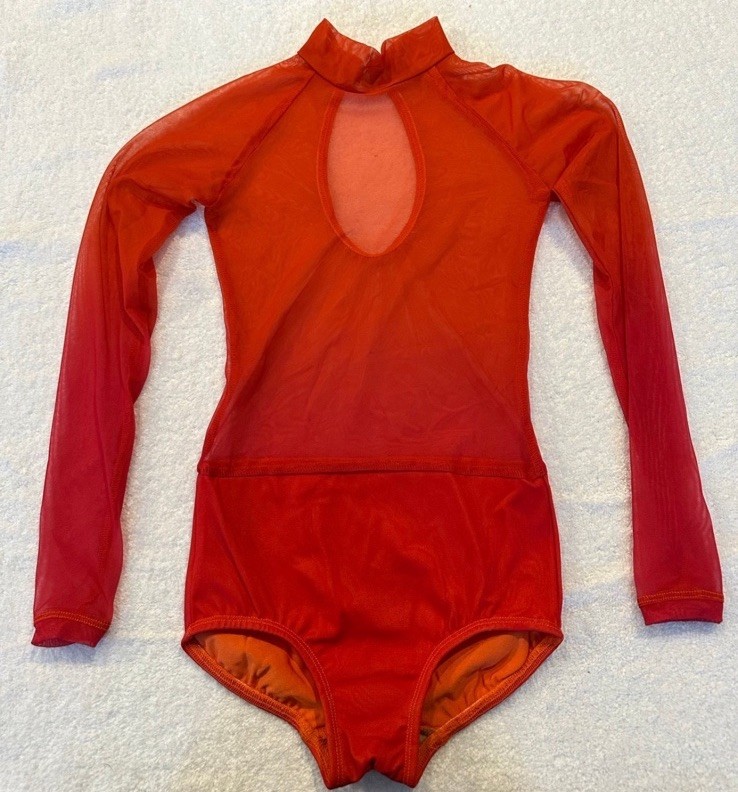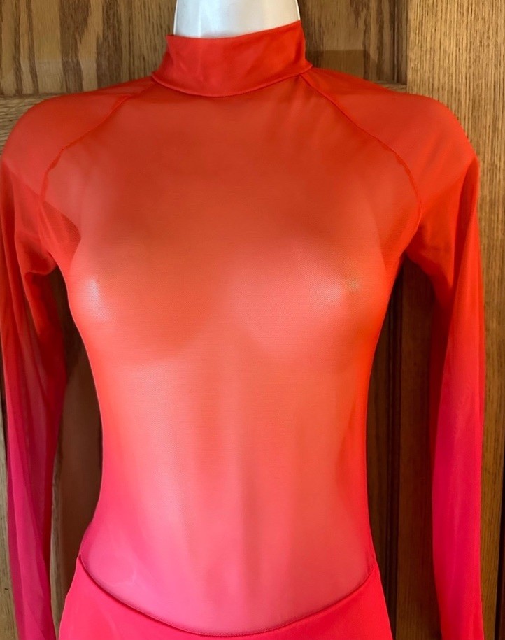 как выглядит THE LINE UP NWOT OMBR MESH ORANGE RED LEOTARD DANCE COSTUME SIZE ADULT EXTRA SM фото