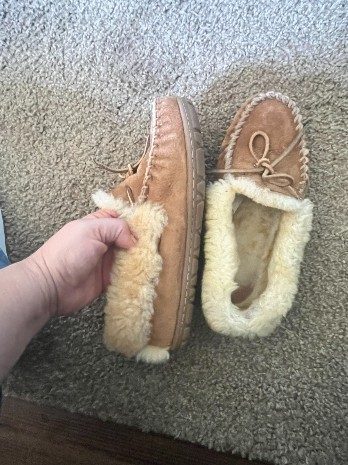 как выглядит LL Bean Suede Sherpa Lined Moccasins Slippers Women s Sz 9 фото