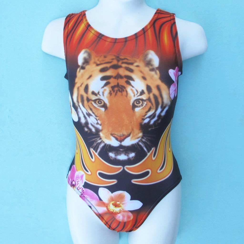 как выглядит Gymnastics Leotard Girls sz CL Child 12 black orange Tiger design Bounce leo ca фото