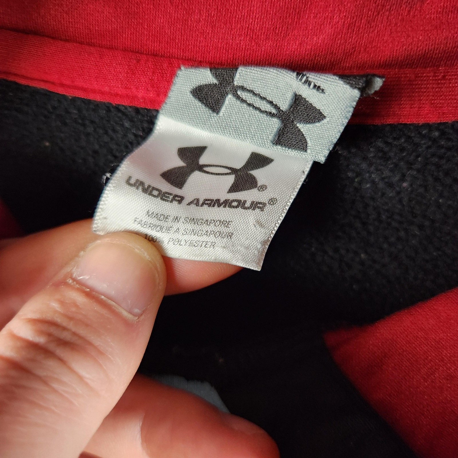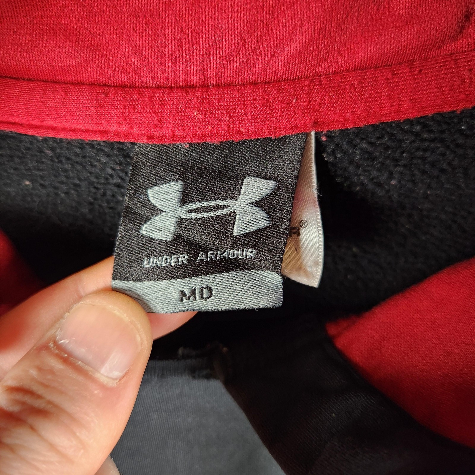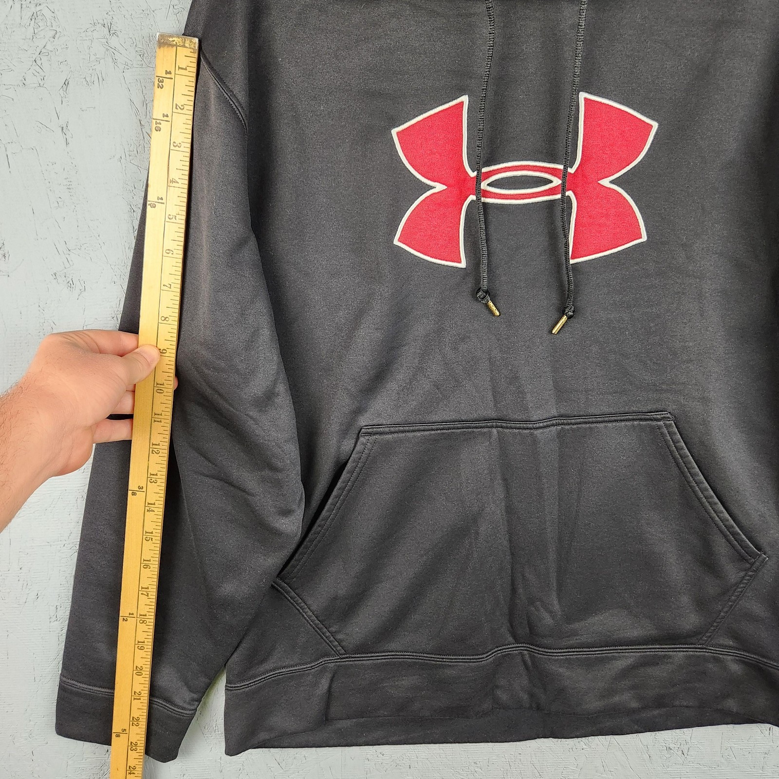 как выглядит Under Armour Hoodie Mens Medium Black Red Big Logo Pullover Sweatshirt Fleece фото