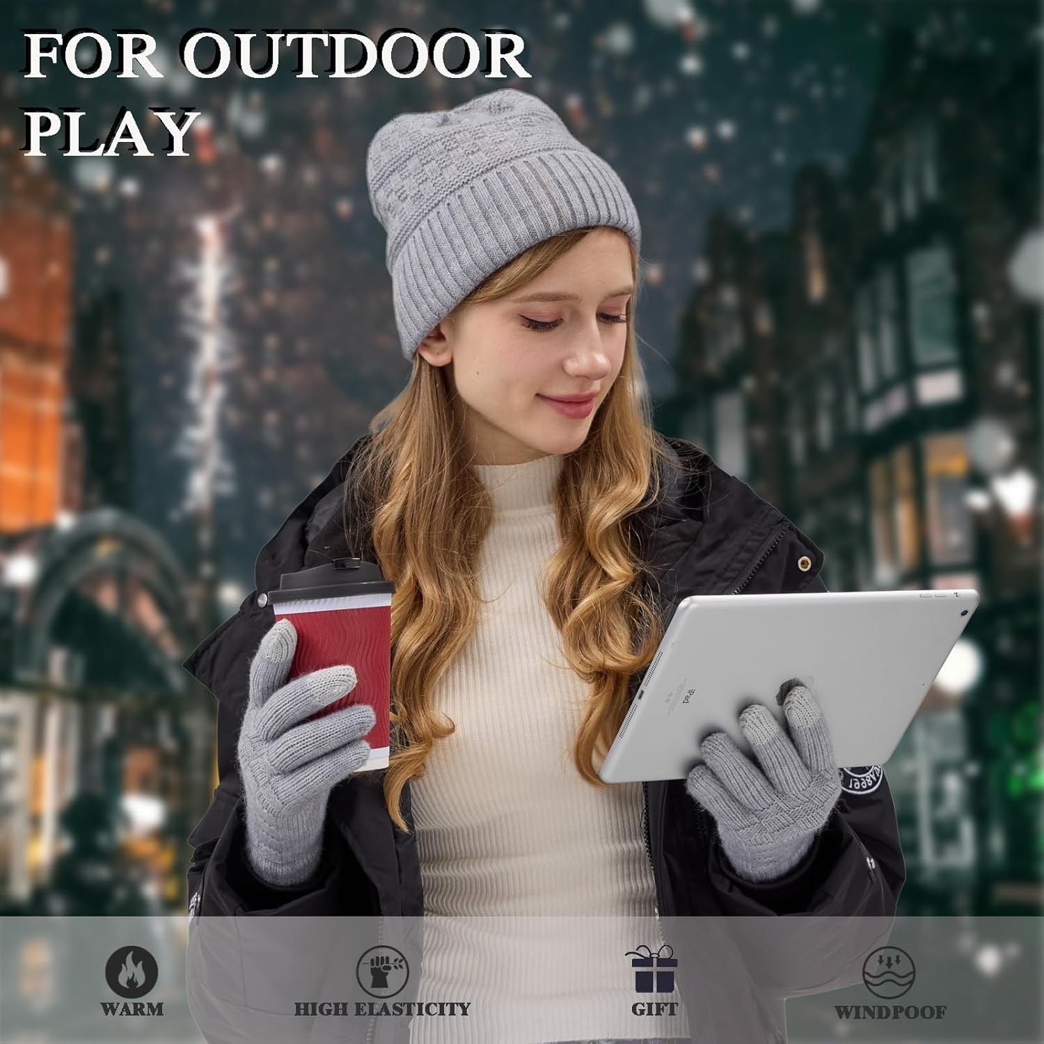 REACH STAR Winter Gloves for Women-Upgraded Touch One Size, Black light Gray