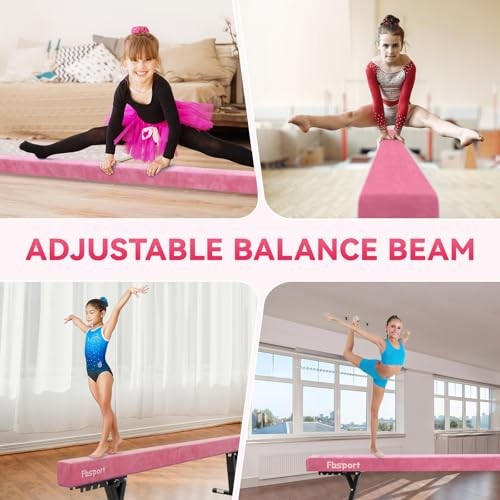 8ft Adjustable Balance Beam: High and Low Floor Beam Gymnastics Equipment Pink
