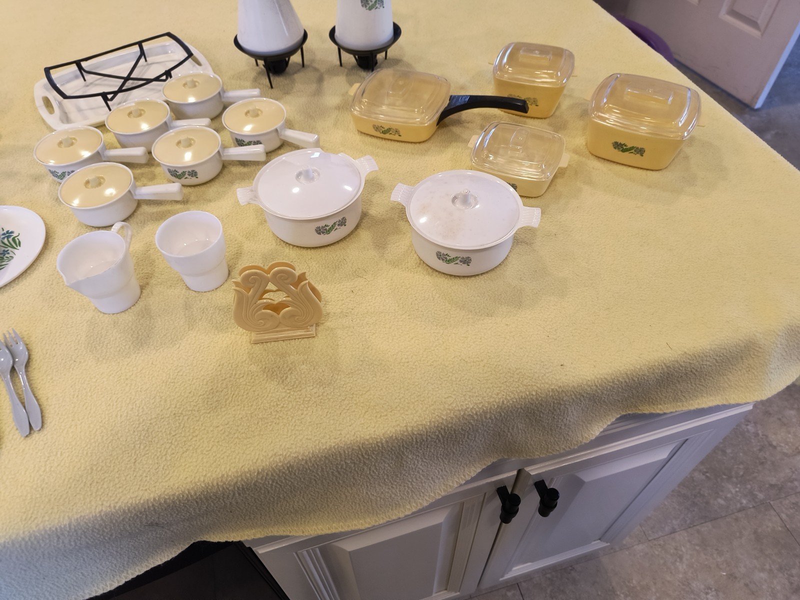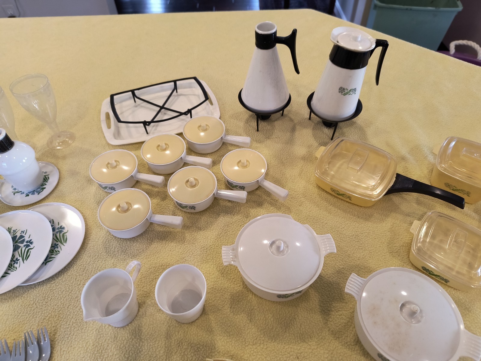 как выглядит abt. 80 piece childs plastic Corningware dinner sets c. 1960 фото