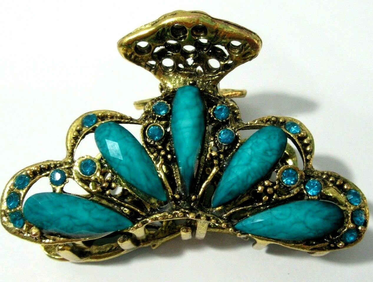 как выглядит TURQUOISE BLUE GOLD TONE ACRYLIC HAIR CLAW GRIP ACCESSORY PRETTY фото