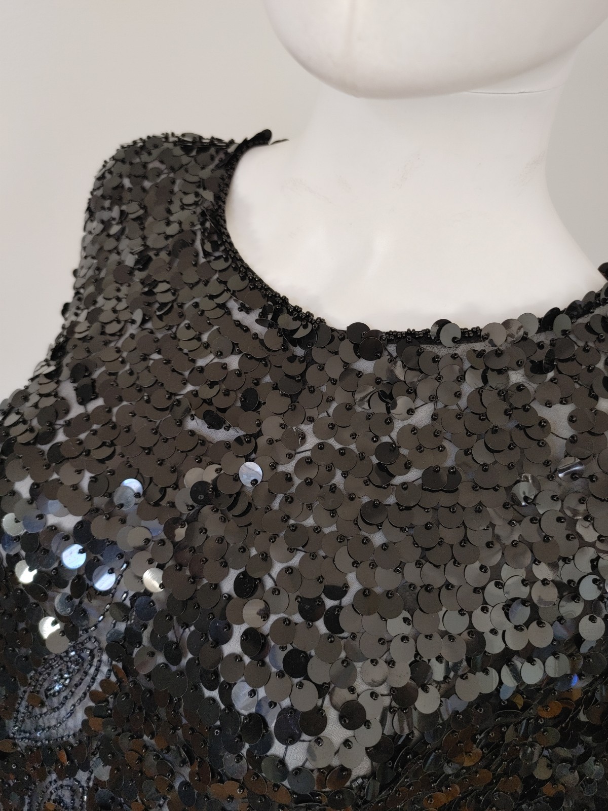 как выглядит 80s VINTAGE Silk Sequin Paillette embellished Flapper Party top Disco 54 Glam L фото