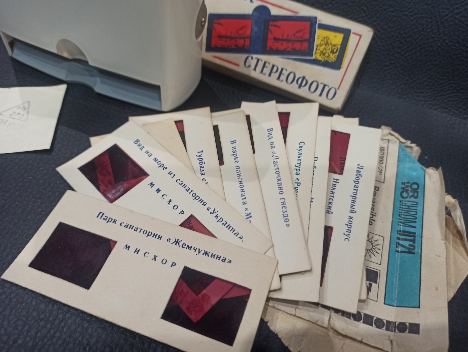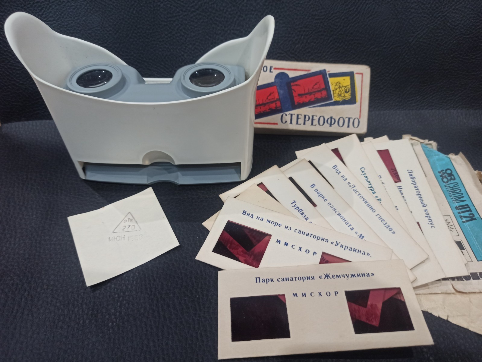 Vintage stereo diascope STEREOSCOPE-3 10 stereo slides ussr