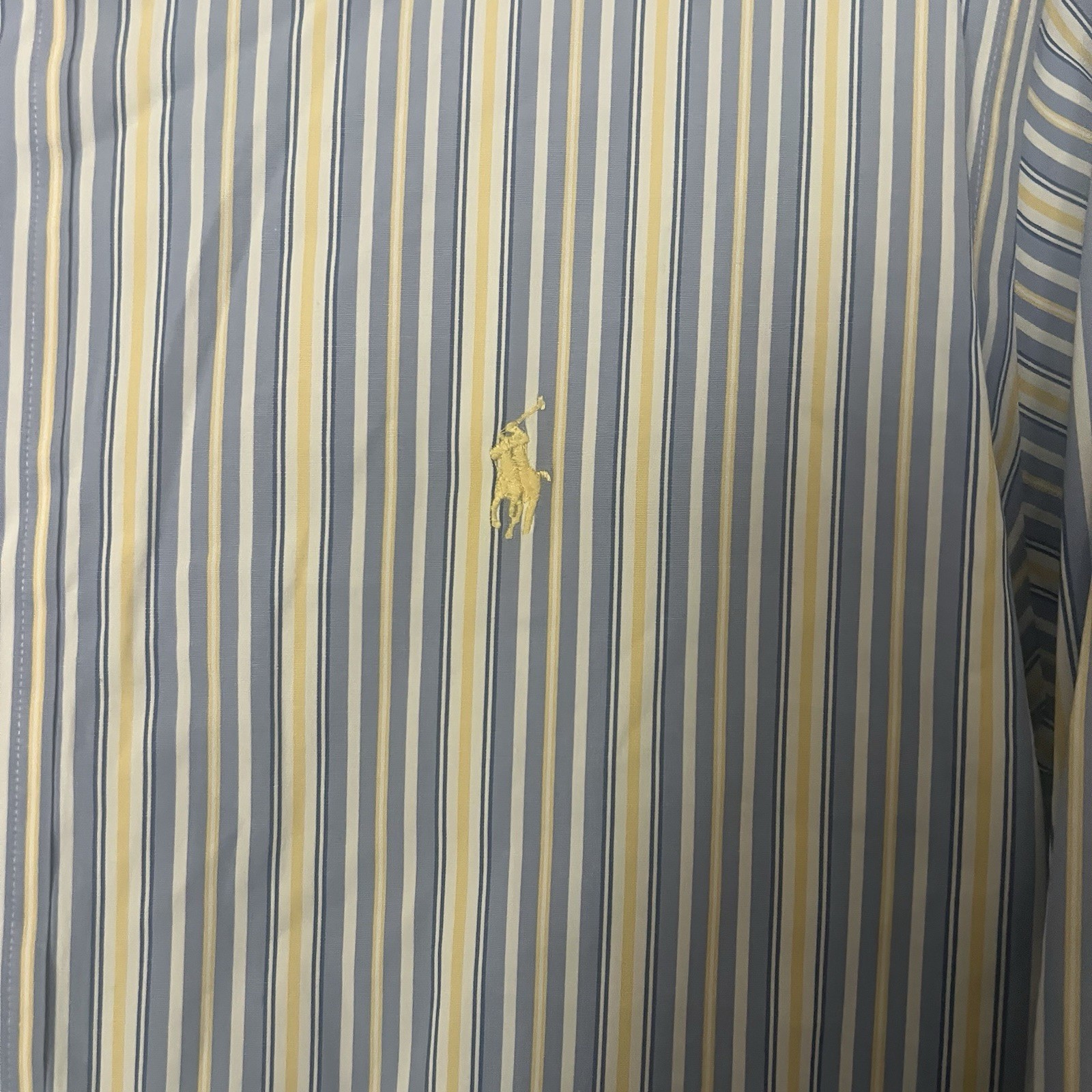 как выглядит RALPH LAUREN Classic Fit Button Down Dress SHIRT 16 1/2 Yellow Blue 32/33 Pony фото