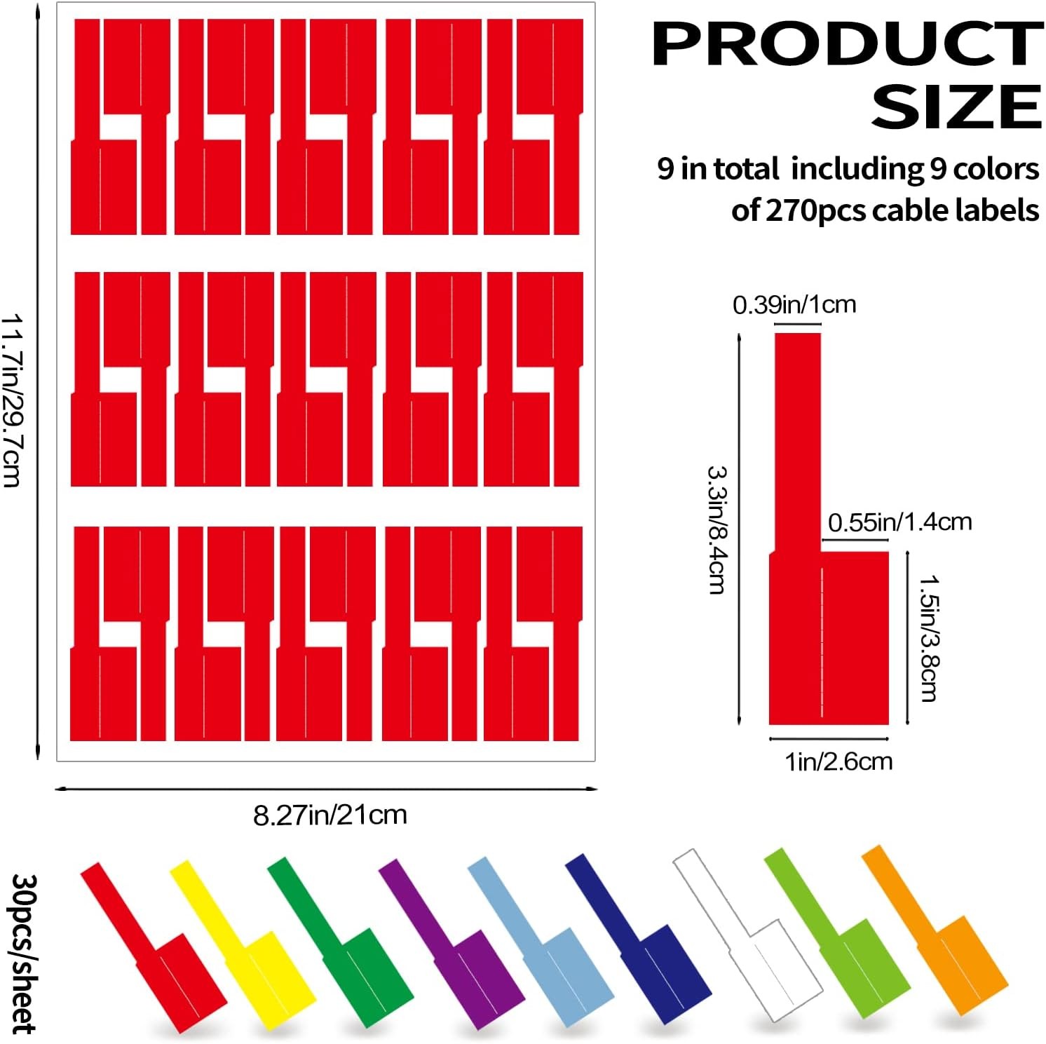 270pcs Waterproof Cable Labels Tear-Resistant Wire Tags Self-Adhesive 9 Colors