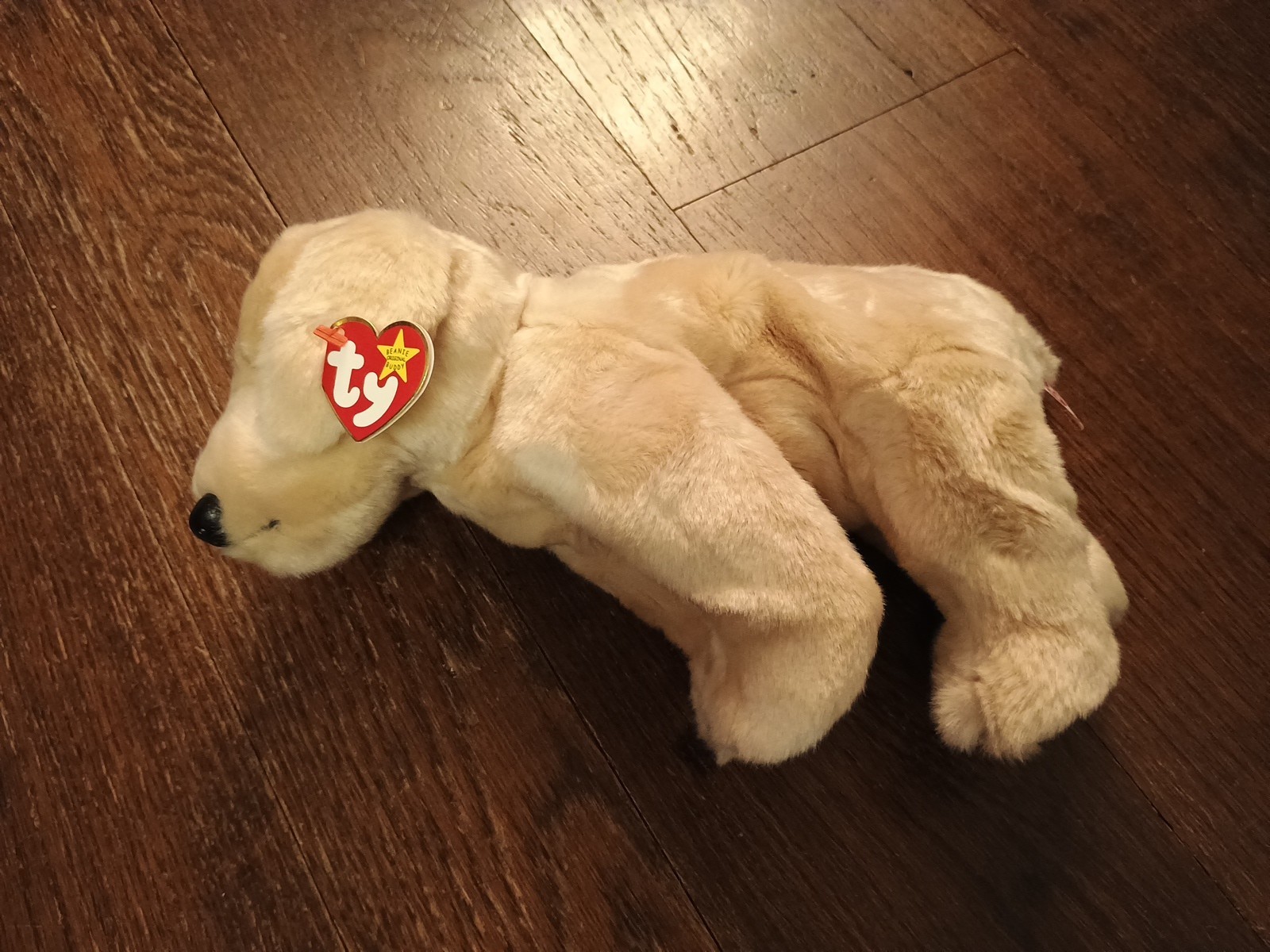 как выглядит Vtg Ty Large Plush Beanie Buddy Plush SOFT Fetch Dog Golden Retriever MWMT 1999 фото