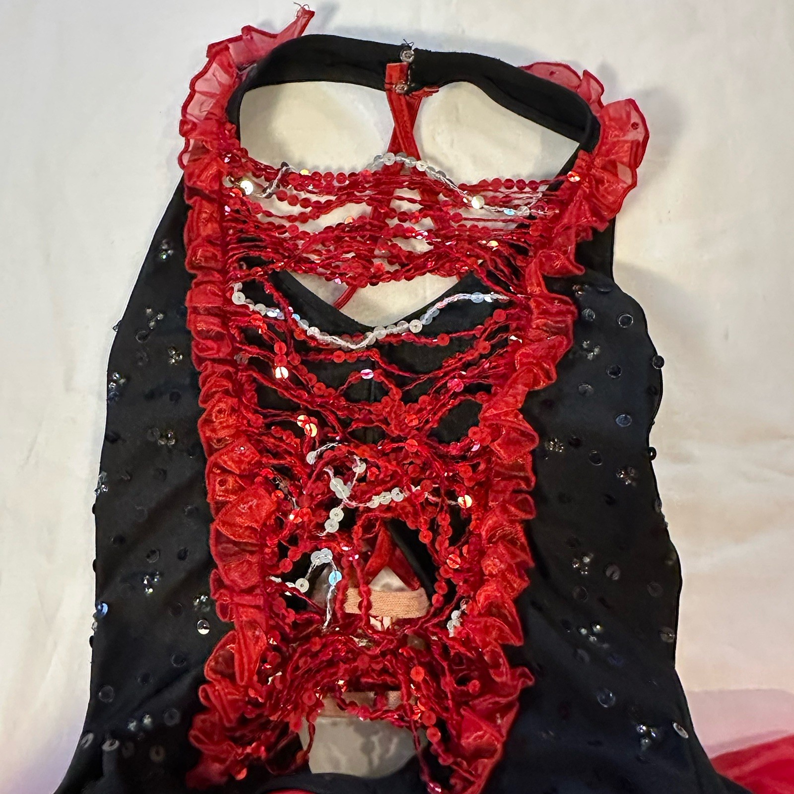 Glamour Red Black Sequin Rhinestone Open Back Tutu Dance Costume SA