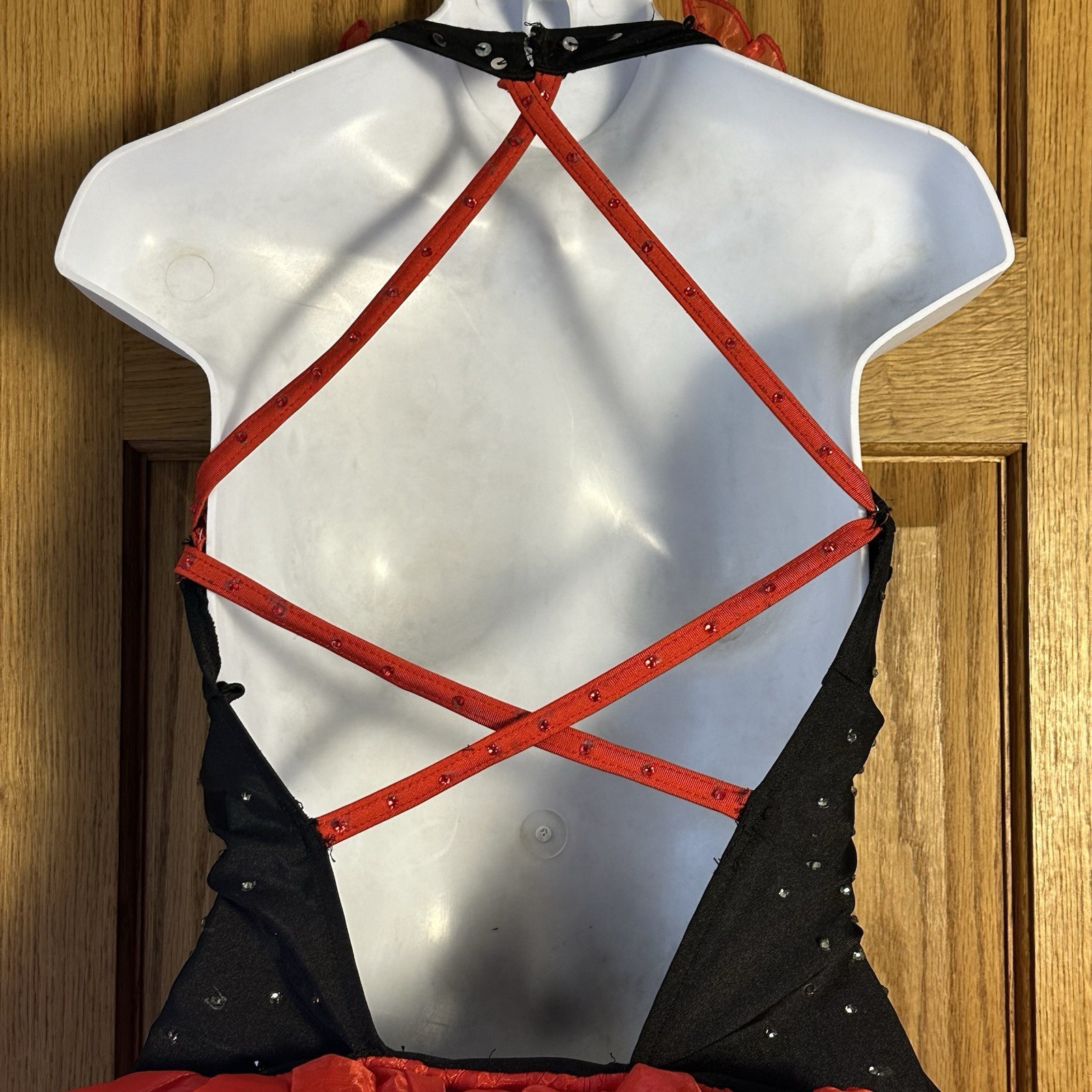 как выглядит Glamour Red Black Sequin Rhinestone Open Back Tutu Dance Costume SA фото