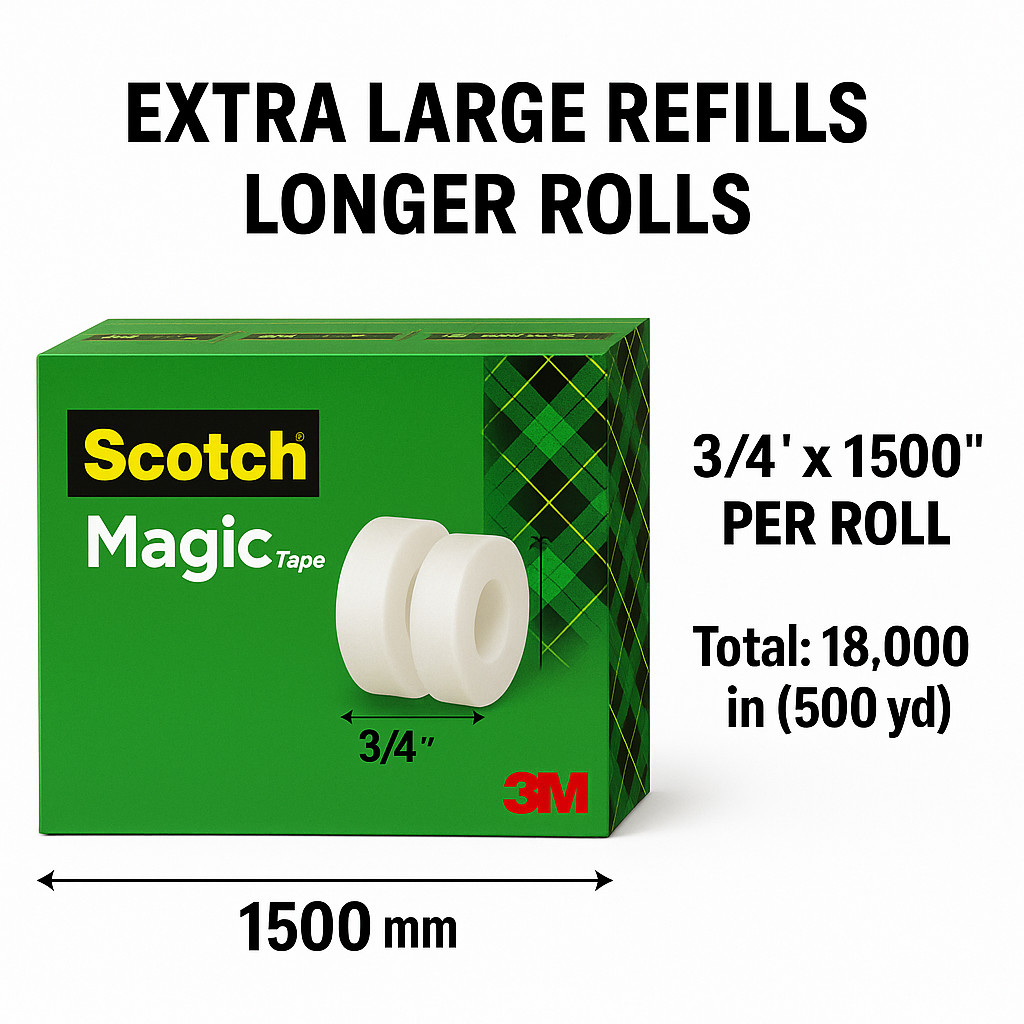 Scotch Magic Tape Refill 3/4 x 1500 Invisible Matte 1 Core 4 Rolls Pack